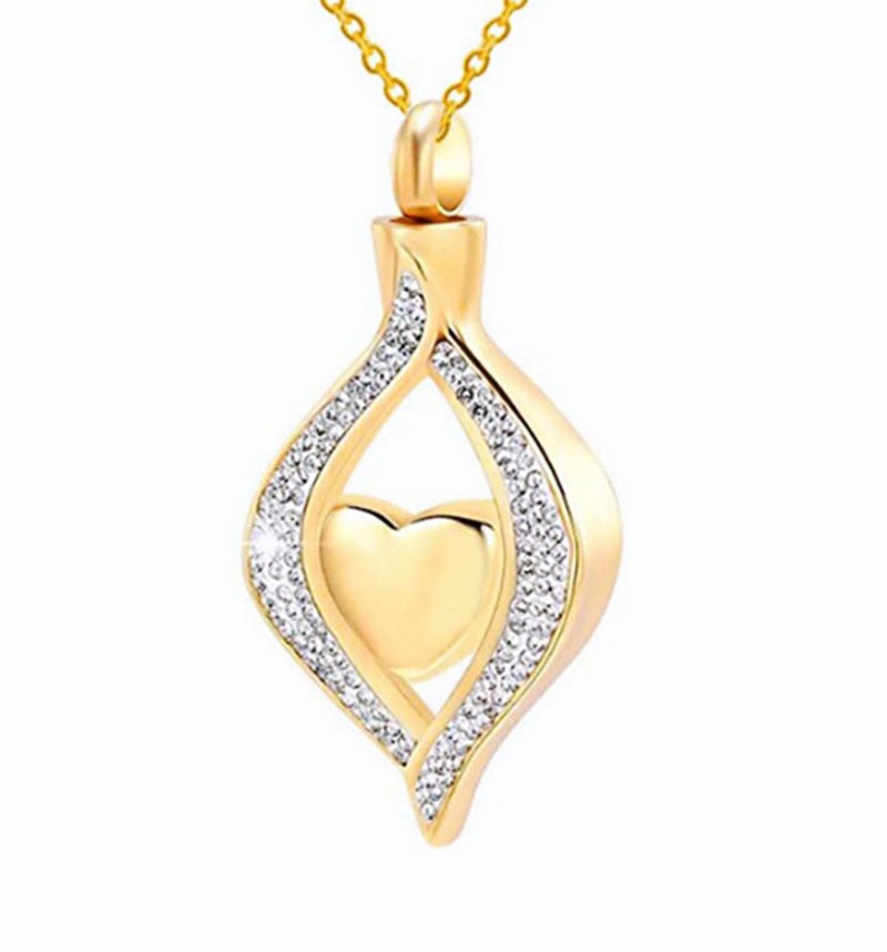 Crystal Teardrop Heart Cremation Urn Pendant Memorial Gift Necklace for Women Stainless Steel Ashes Holder Keepsake Jewelry quantity
