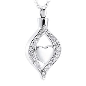 Crystal Teardrop Heart Cremation Urn Pendant Memorial Gift Necklace for Women Stainless Steel Ashes Holder Keepsake Jewelry