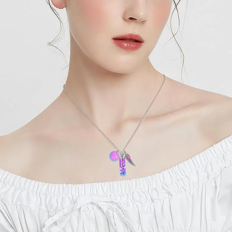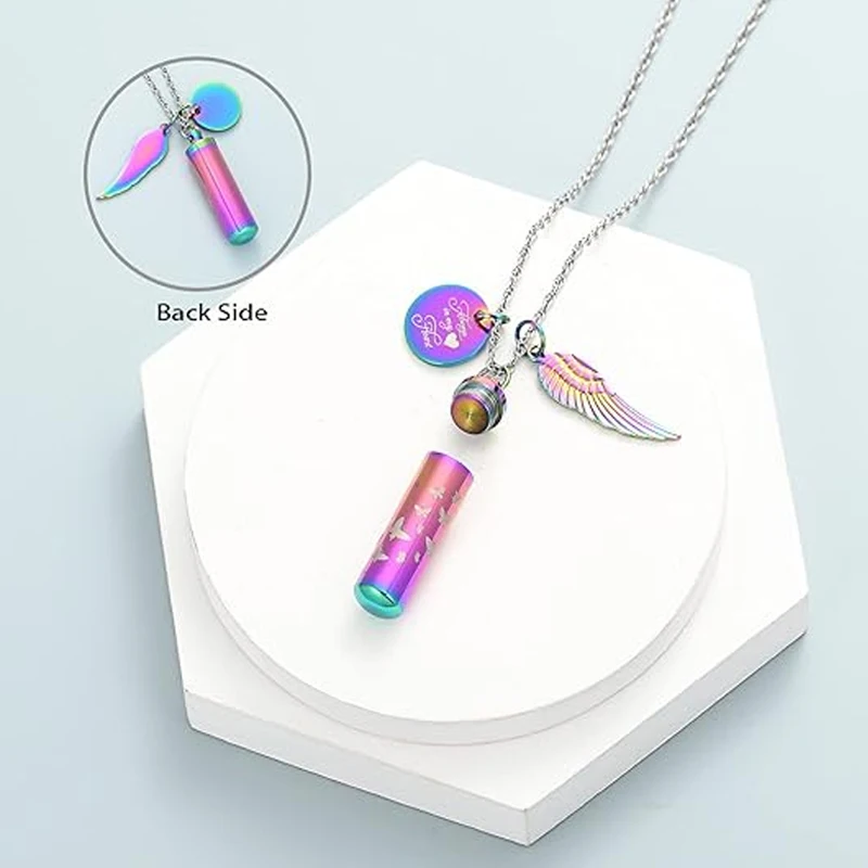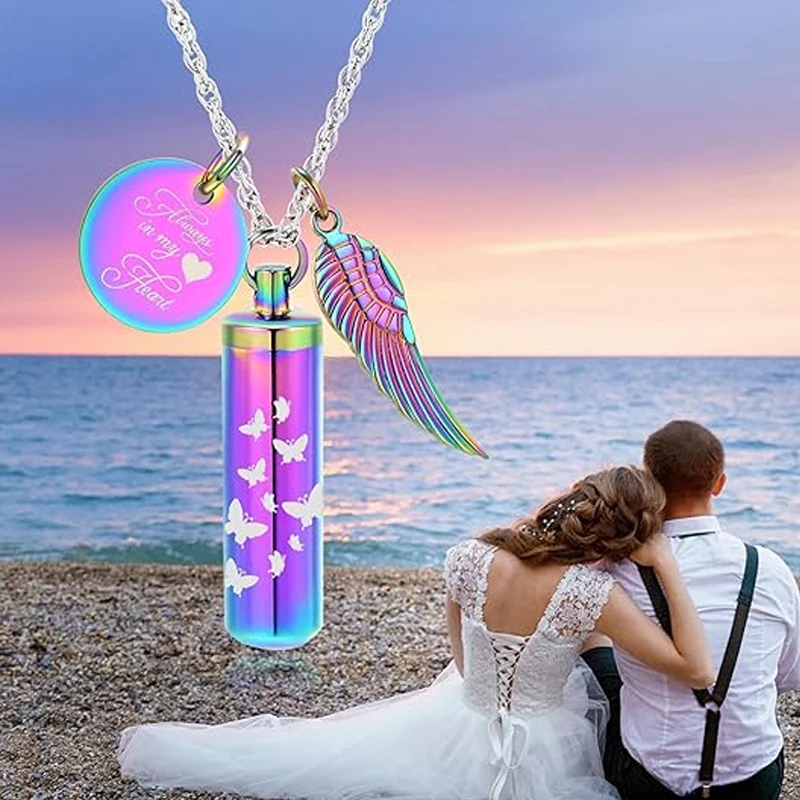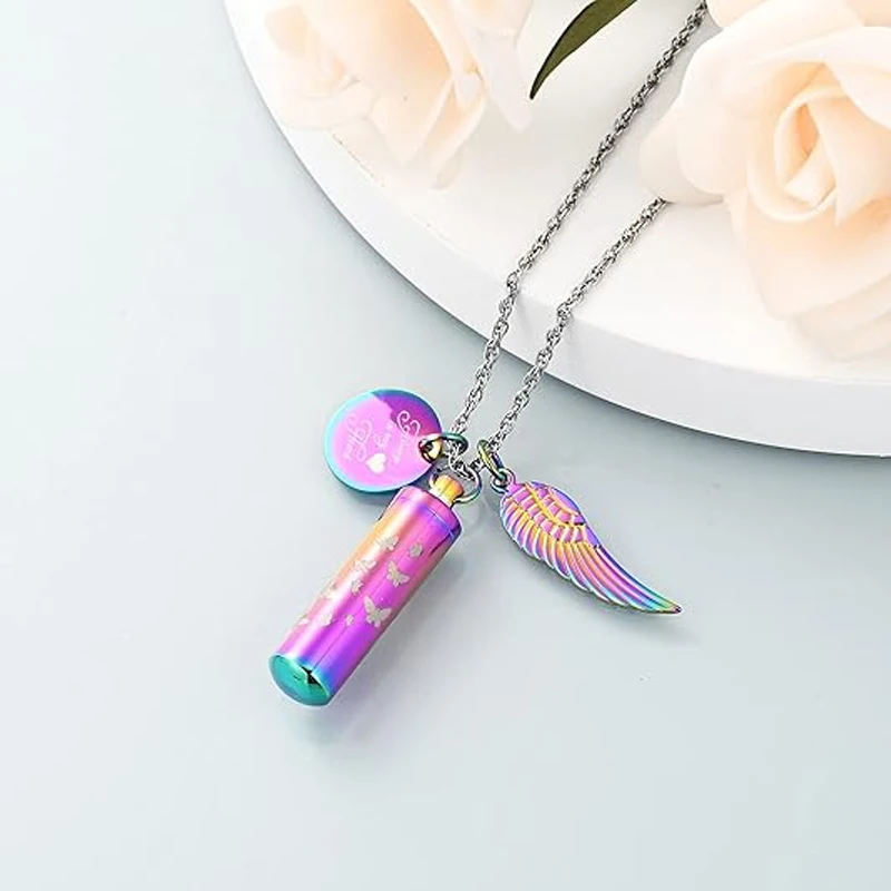 Cylindrical bone ash necklace for women and men, butterfly cremation jewelry, gray heart, a commemorative angel wing pendant quantity