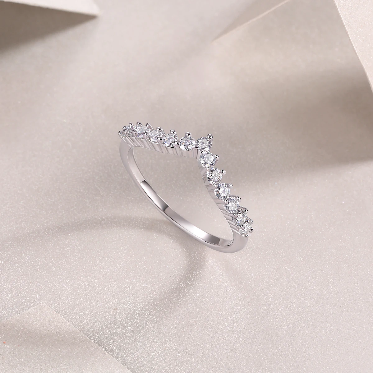 925 sterling silver jewelry set European and American V-shaped crown ring denier-shaped zircon pendant necklace simple earrings