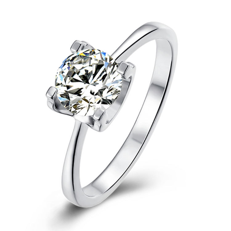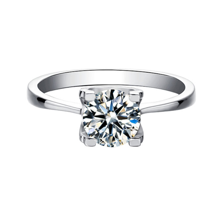 D-grade moissanite ring 925 silver simple four-prong one-carat imitation diamond ring women’s wedding ring one piece on behalf of the hair