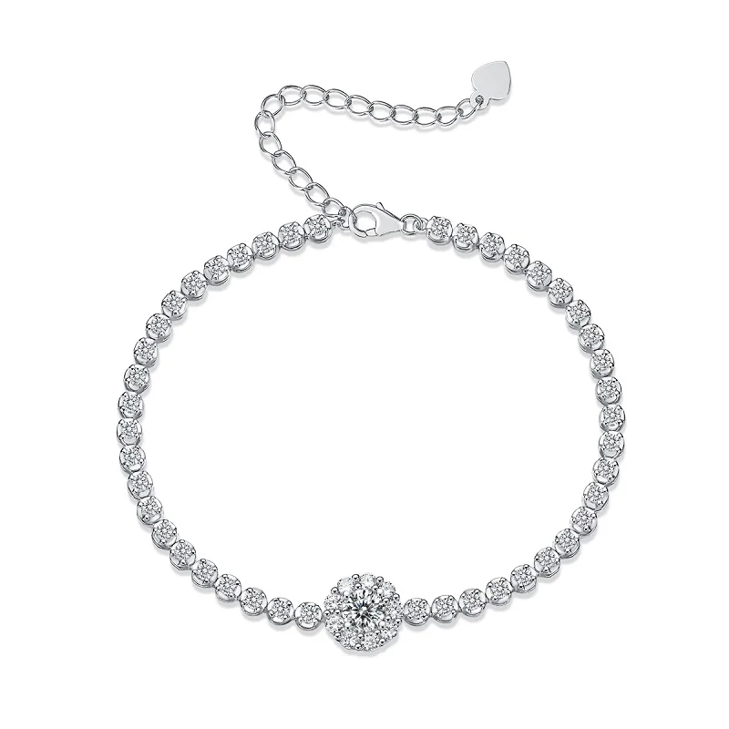 D VVS1 Moissanite Tennis Bracelet S925 Sterling Silver Bracelets with GRA