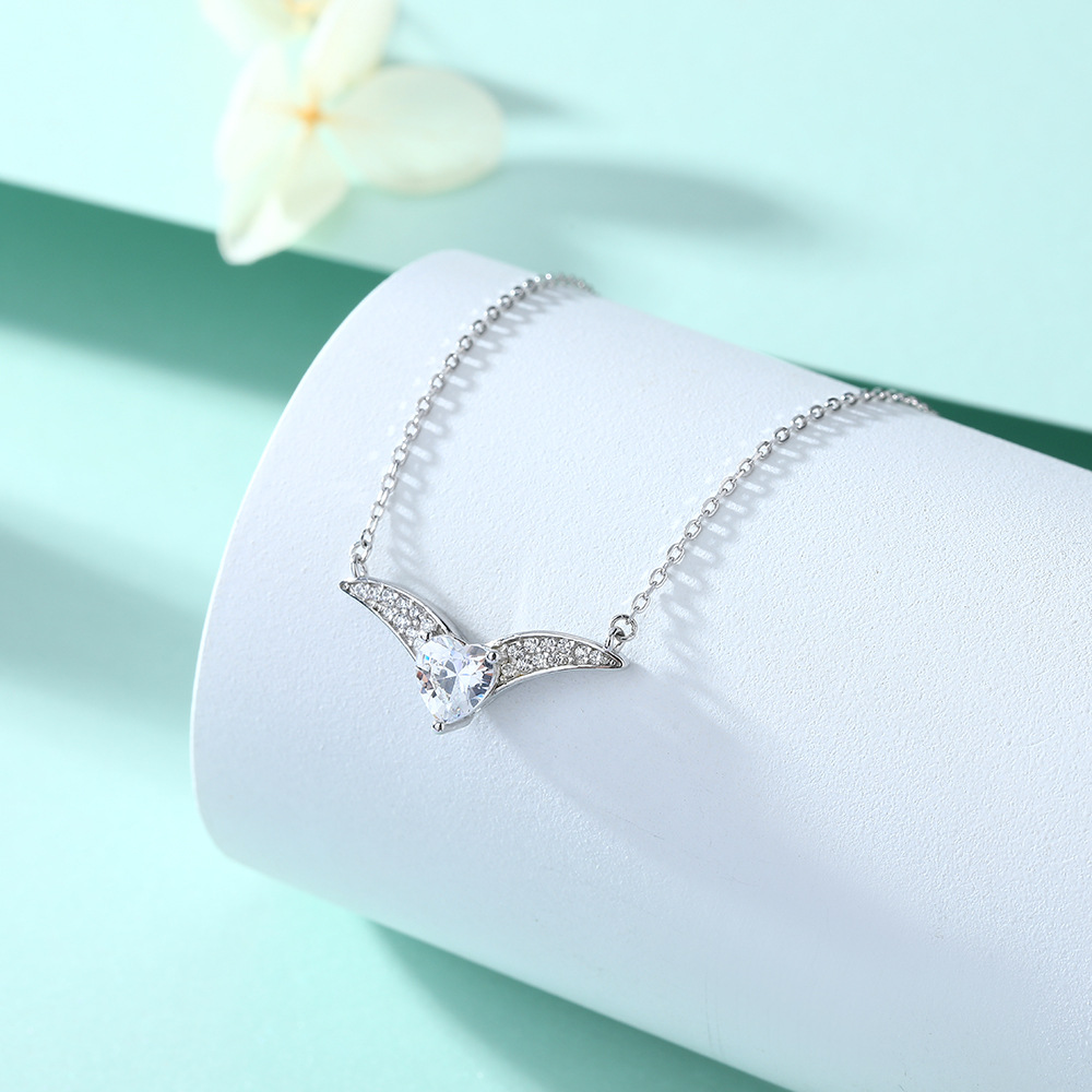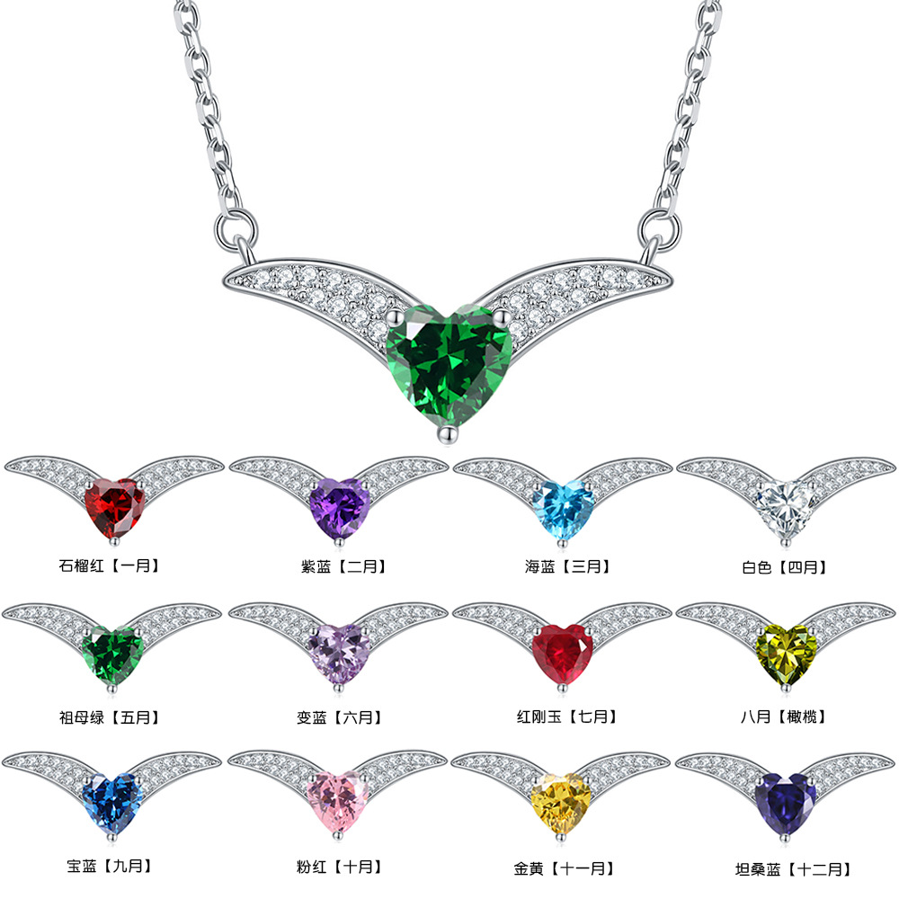 December birthstone emerald heart zircon heart heart necklace female niche s925 sterling silver v-shaped clavicle chain ins