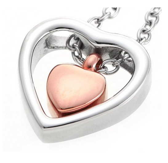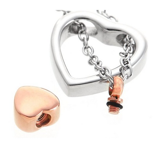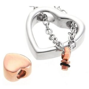 Double Heart Rose Gold Cremation Urn Necklace Pendant Funnel Fill Kit Keepsake Memorial Ashes