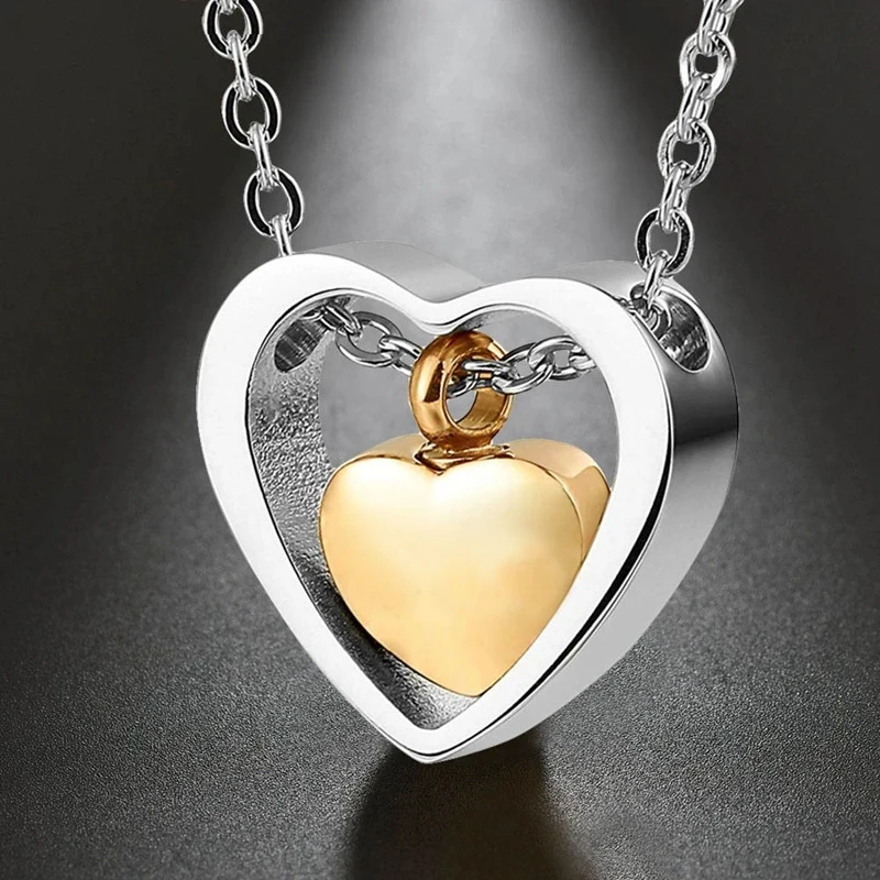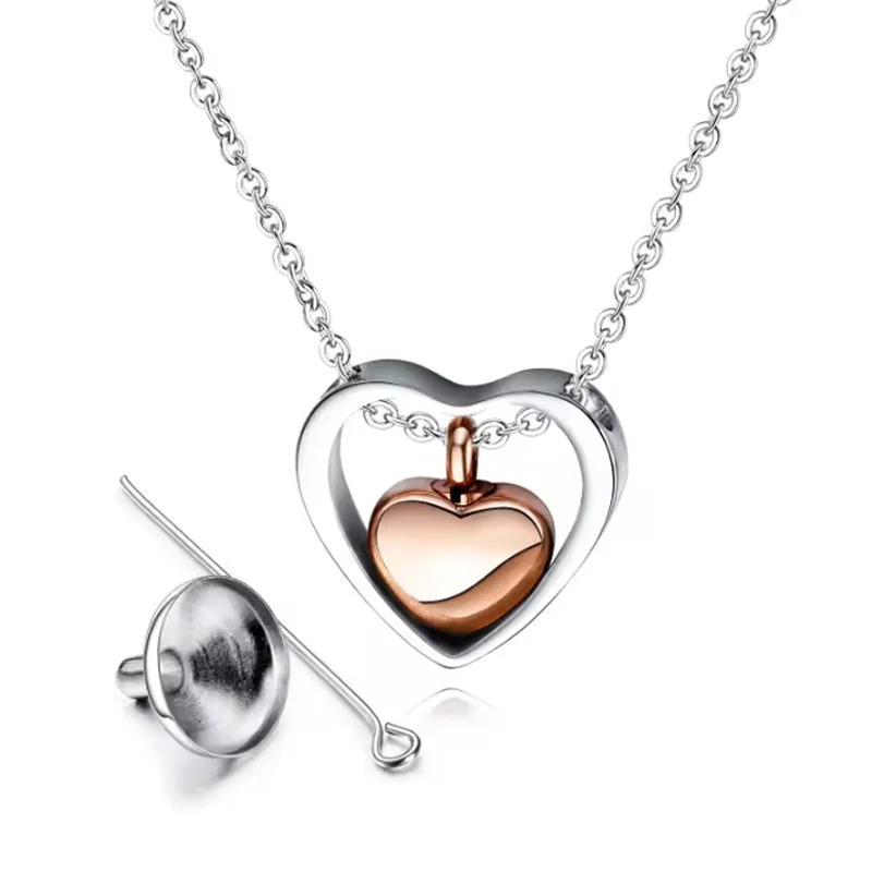 Double Heart Urn Necklaces for Human Pet Ashes Cremation Jewelry for Ashes Keepsake Memorial Pendant Jewelry quantity