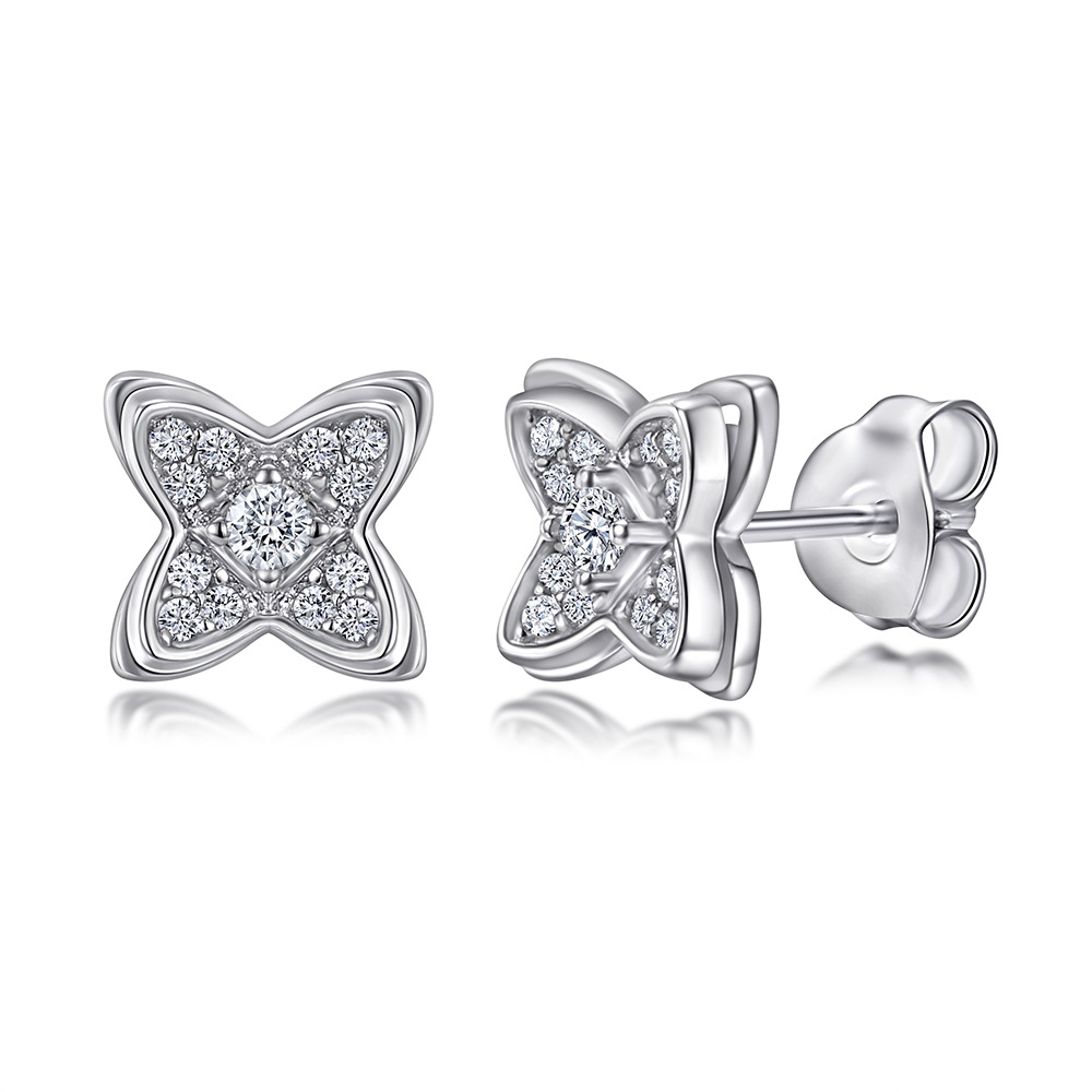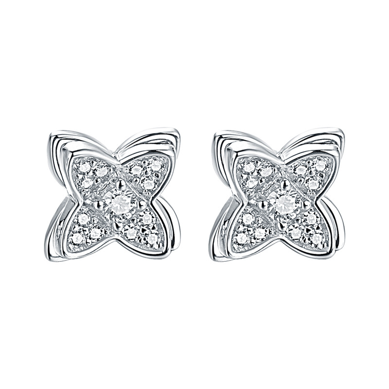 Double-layer diamond-studded four-leaf clover 925 sterling silver stud earrings women’s earrings in Europe and the United States simple foreign trade explosive earrings earrings