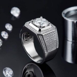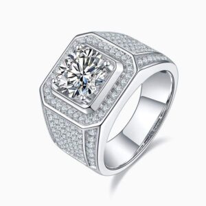 Elegant 3 Carat Round Moissanite Men’s Ring S925 Silver with 18K Gold Plating