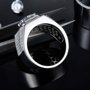 Sterling Silver Black Square Men’s Ring Atmospheric Luxury Drop Glue Drip Glaze S925 Silver Men’s Ring Men’s Ring