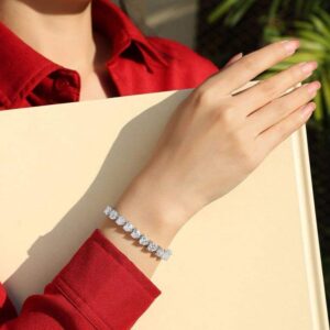 Elegant Moissanite Tennis Bracelet 1 Carat Heart Lab-Created Diamond, 18K Gold Plated 925 Silver, Ideal for Any Occasion