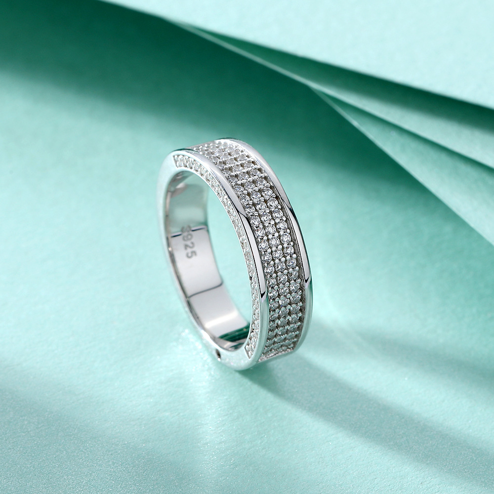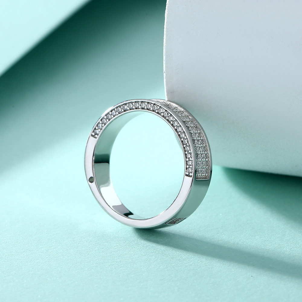 European and American fashion sterling silver wide row diamond zircon silver ring women’s niche full diamond ring 925 Silver Rings