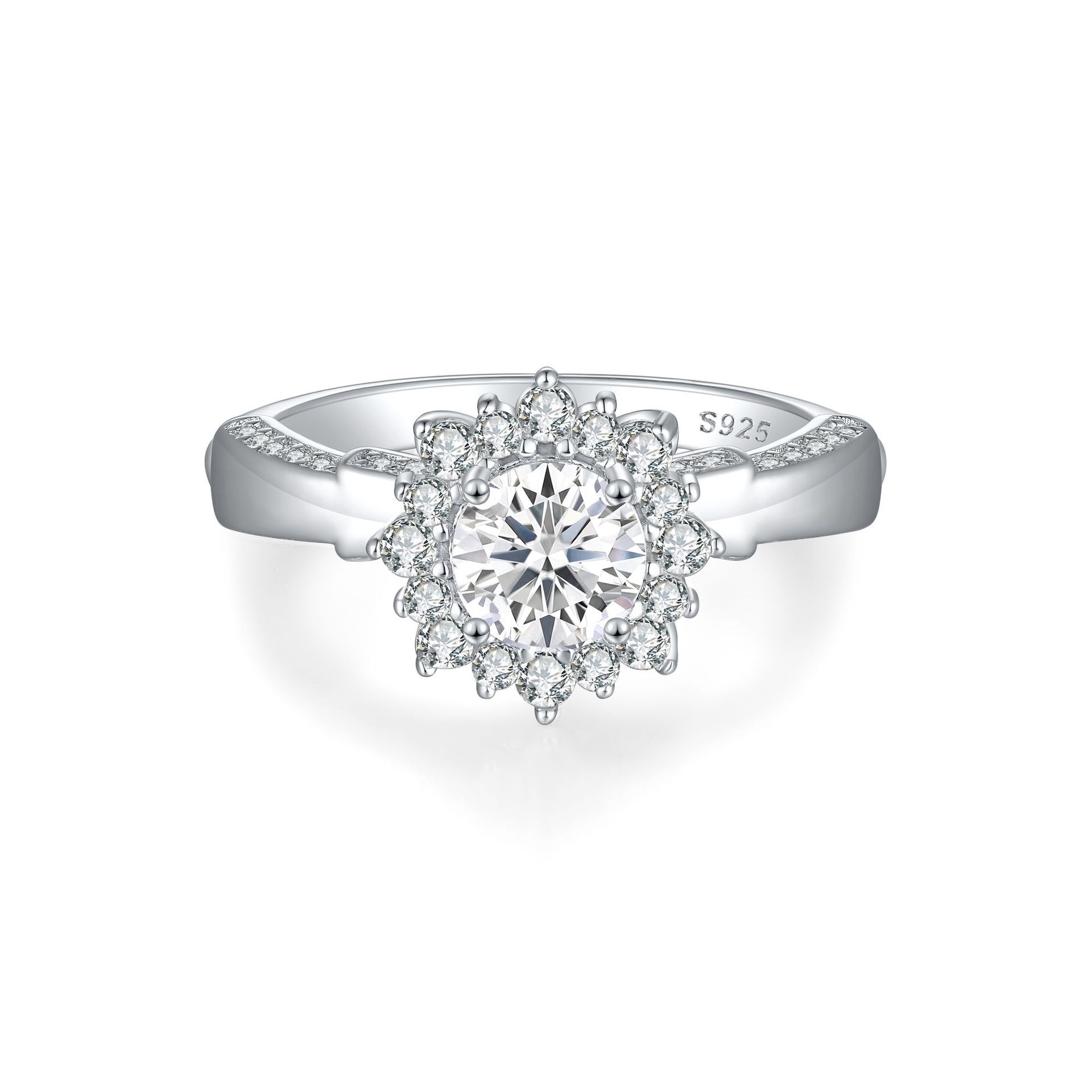 European and American popular personality sunflower sterling silver zircon ring 925 pure silver hand ornament ring wedding ring Silver ring