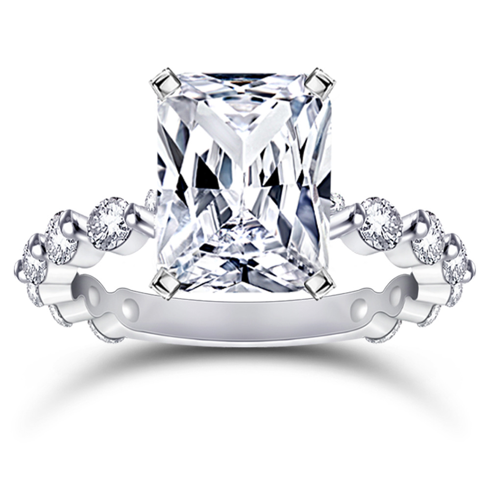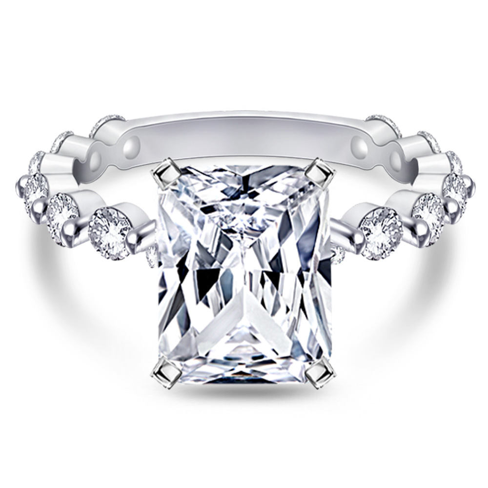 European and American s925 sterling silver baguette princess diamond ring for ladies exaggerated oversized square diamond 5A zircon ring row of diamonds