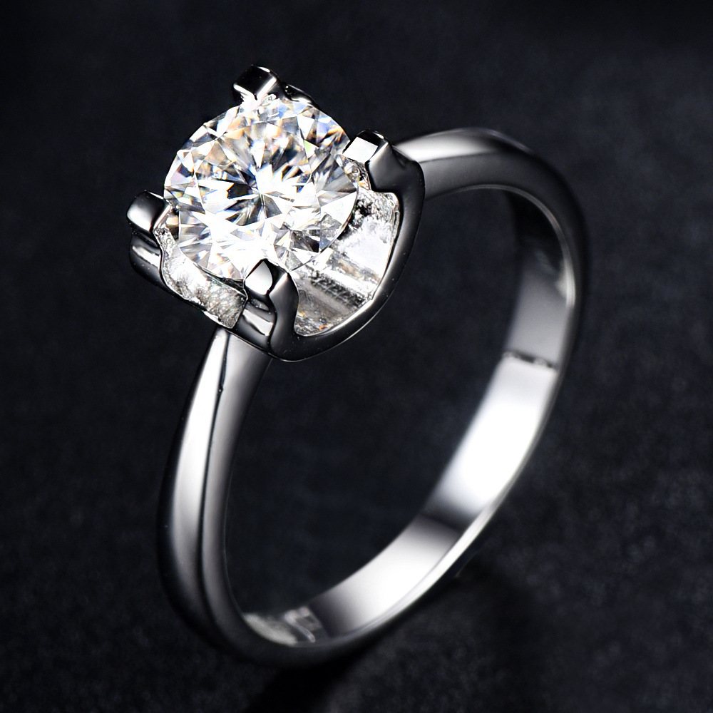 European and American simple 925 sterling silver four-claw bull’s head one carat moissanite ring D grade moissanite ring high quality