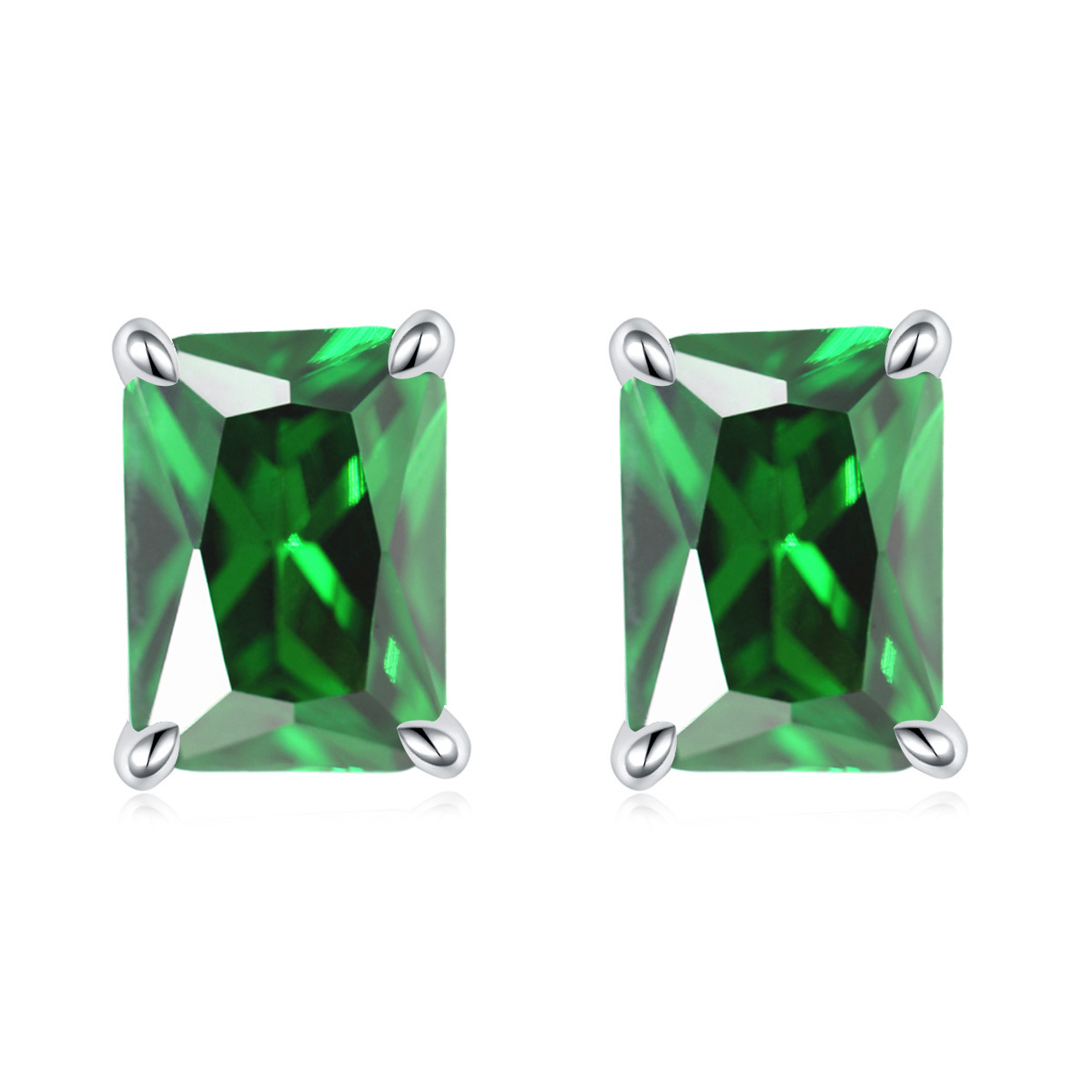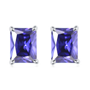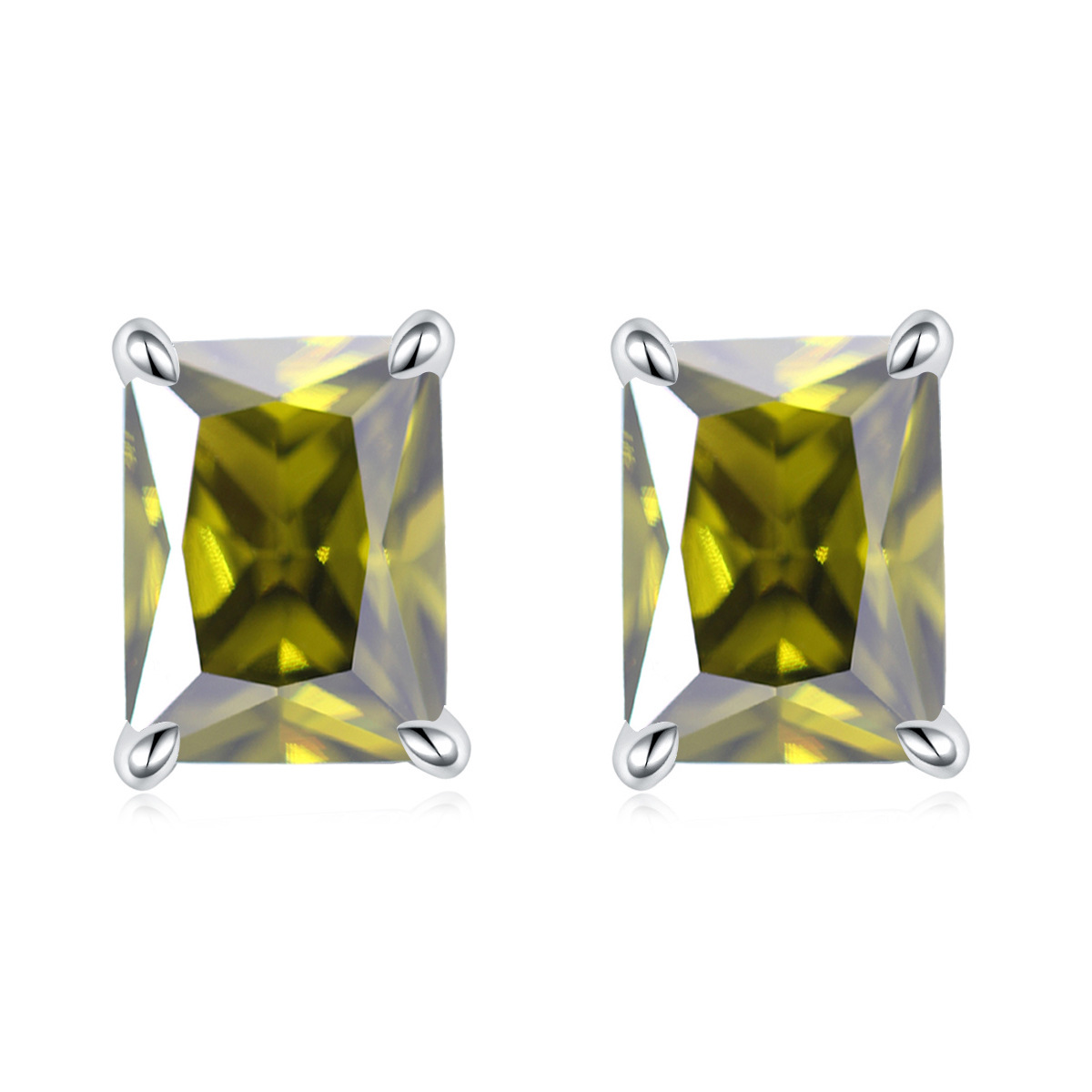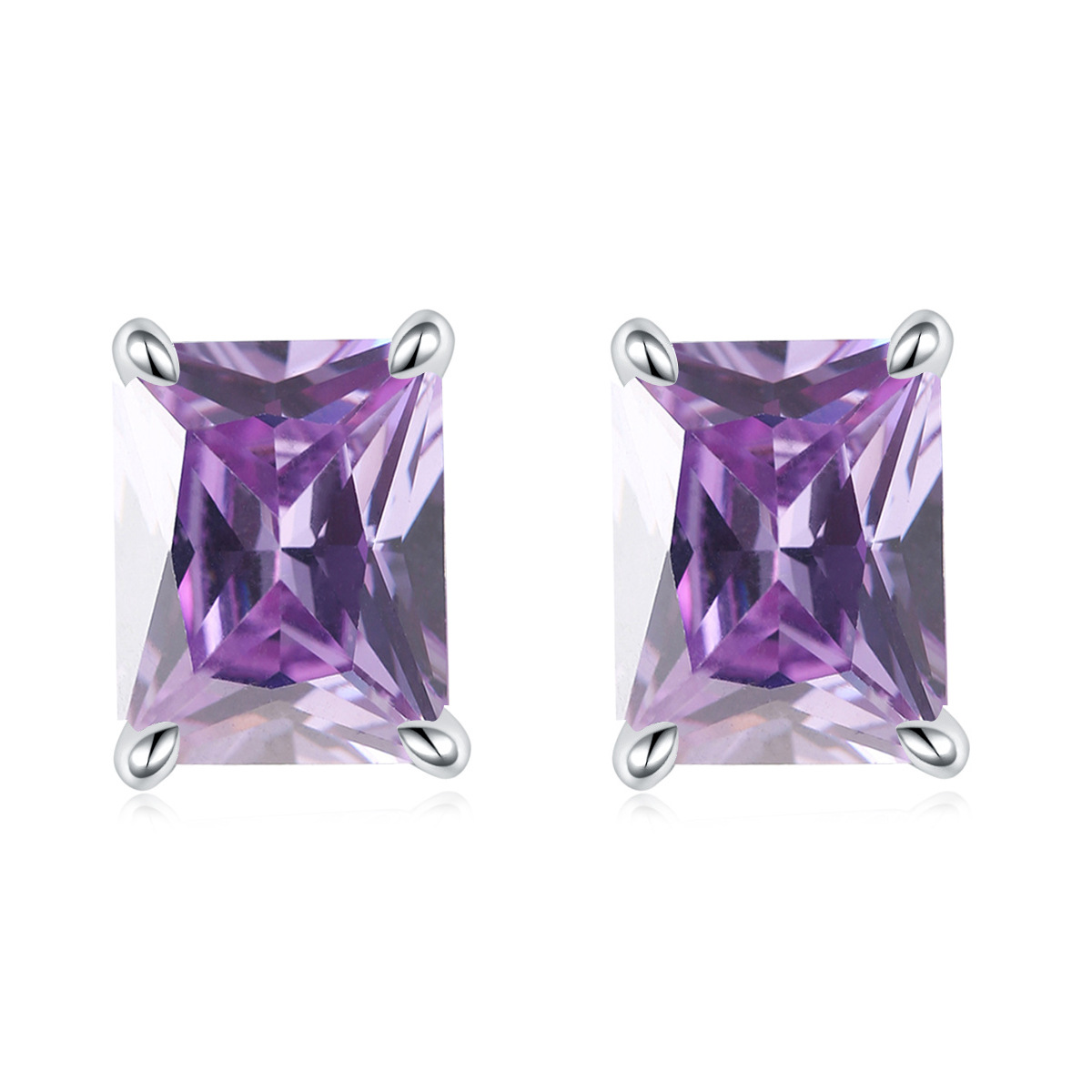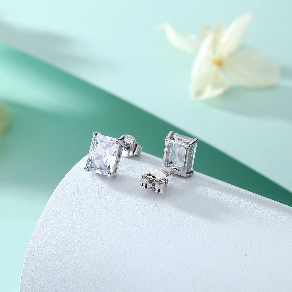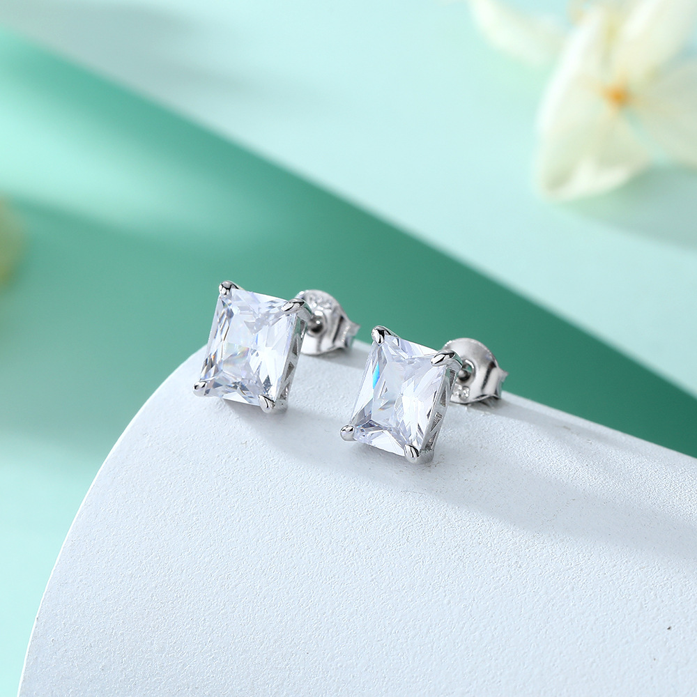 European and American square colored gemstone zircon stud earrings simple 925 sterling silver color crystal earrings ins earrings luxury wholesale