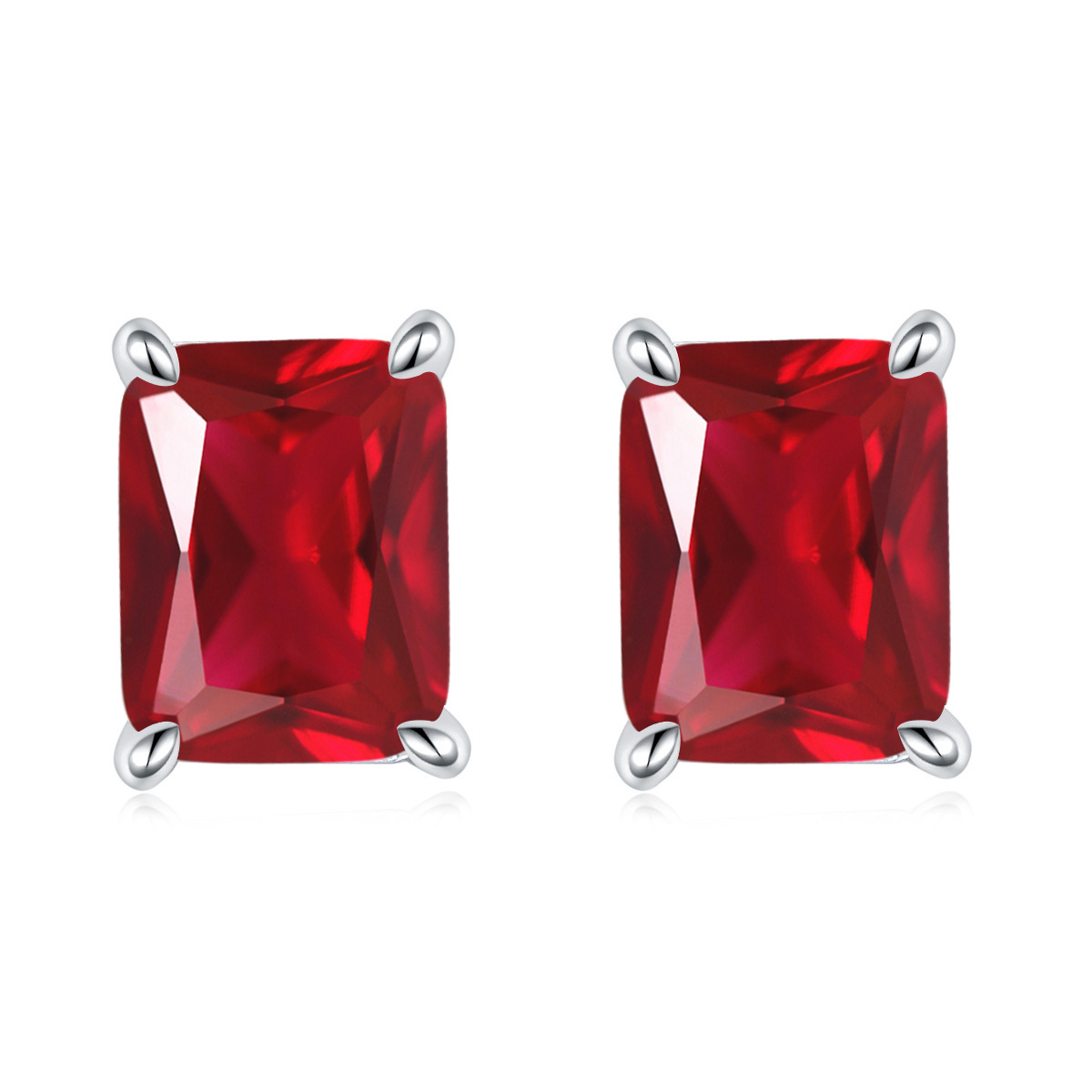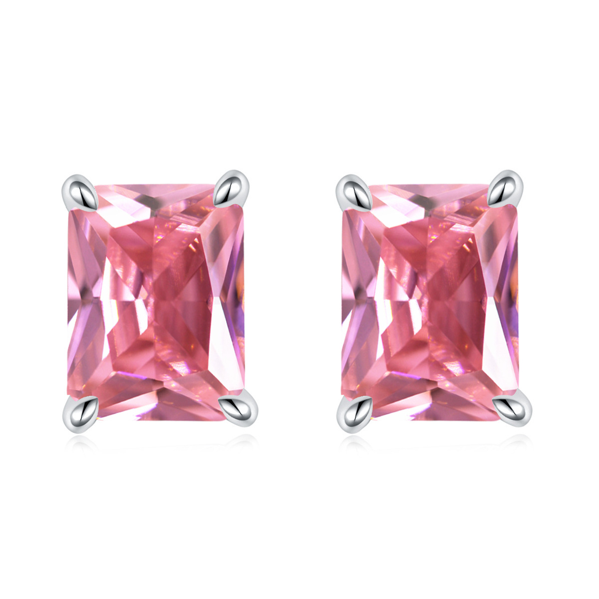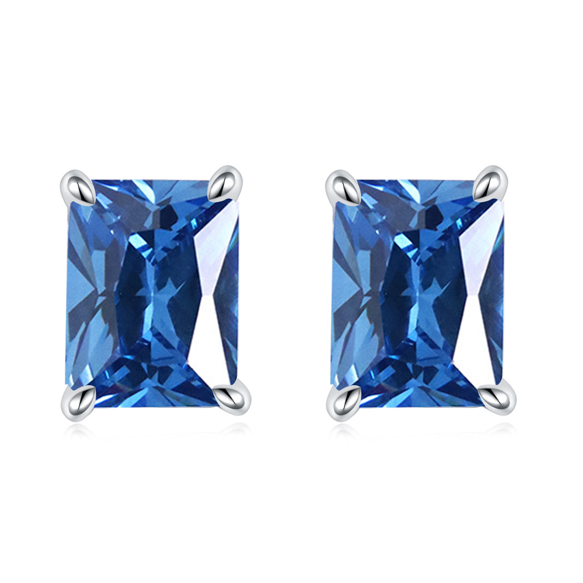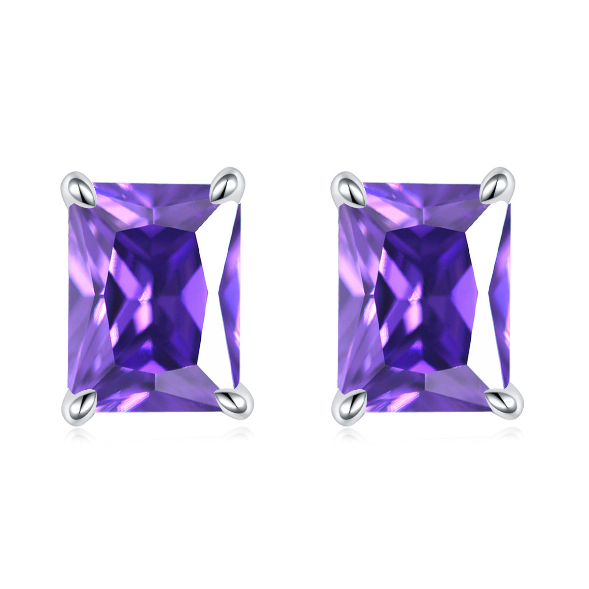 European and American square colored gemstone zircon stud earrings simple 925 sterling silver color crystal earrings ins earrings luxury wholesale