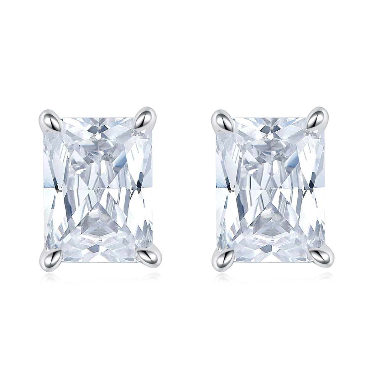 S925 sterling silver jewelry set four-piece square diamond ring earrings necklace fashion bracelet