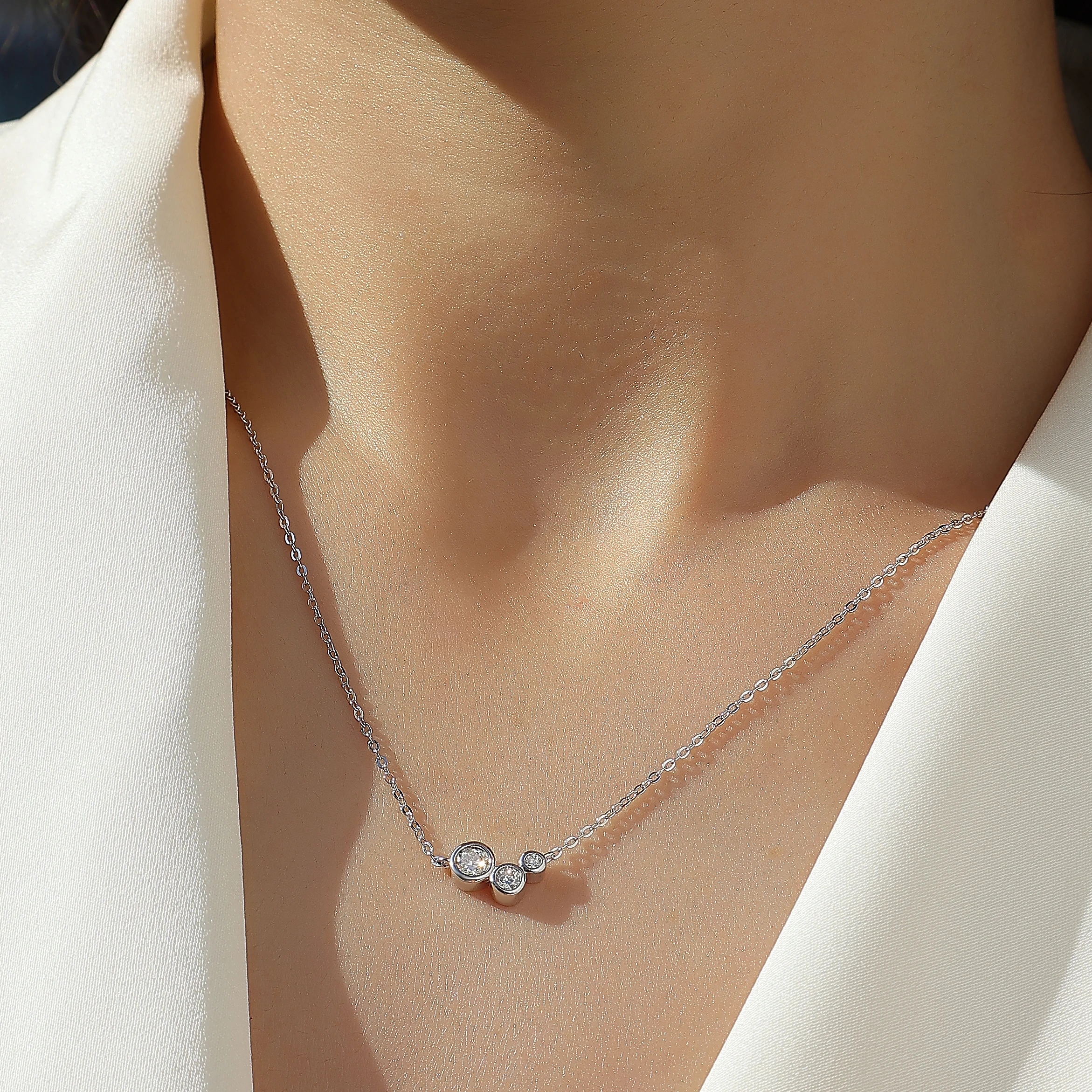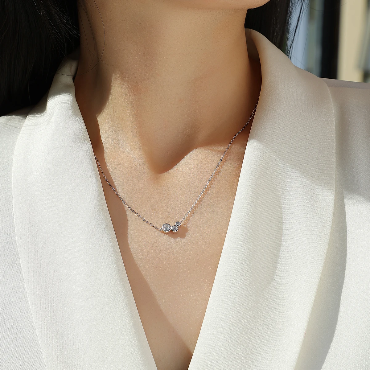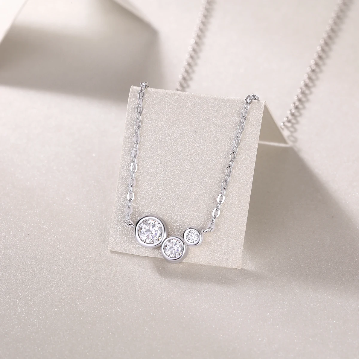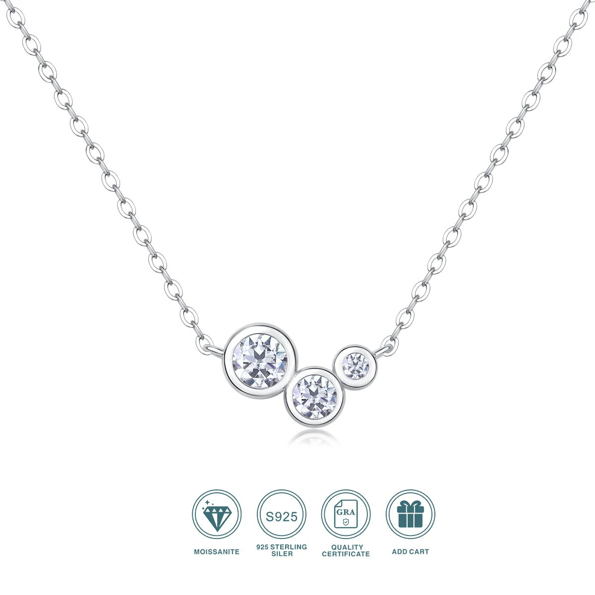 Exquisite Women’s Necklace S925 Silver Round Moissanite Cut Diamond Bubble Necklace