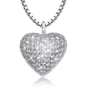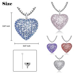 Fashion Cremation Necklace Heart Urn Pendant with CZ for Pet Dog Cat Human Ashes Keepsake Memorial Jewelry Gift for Women Men