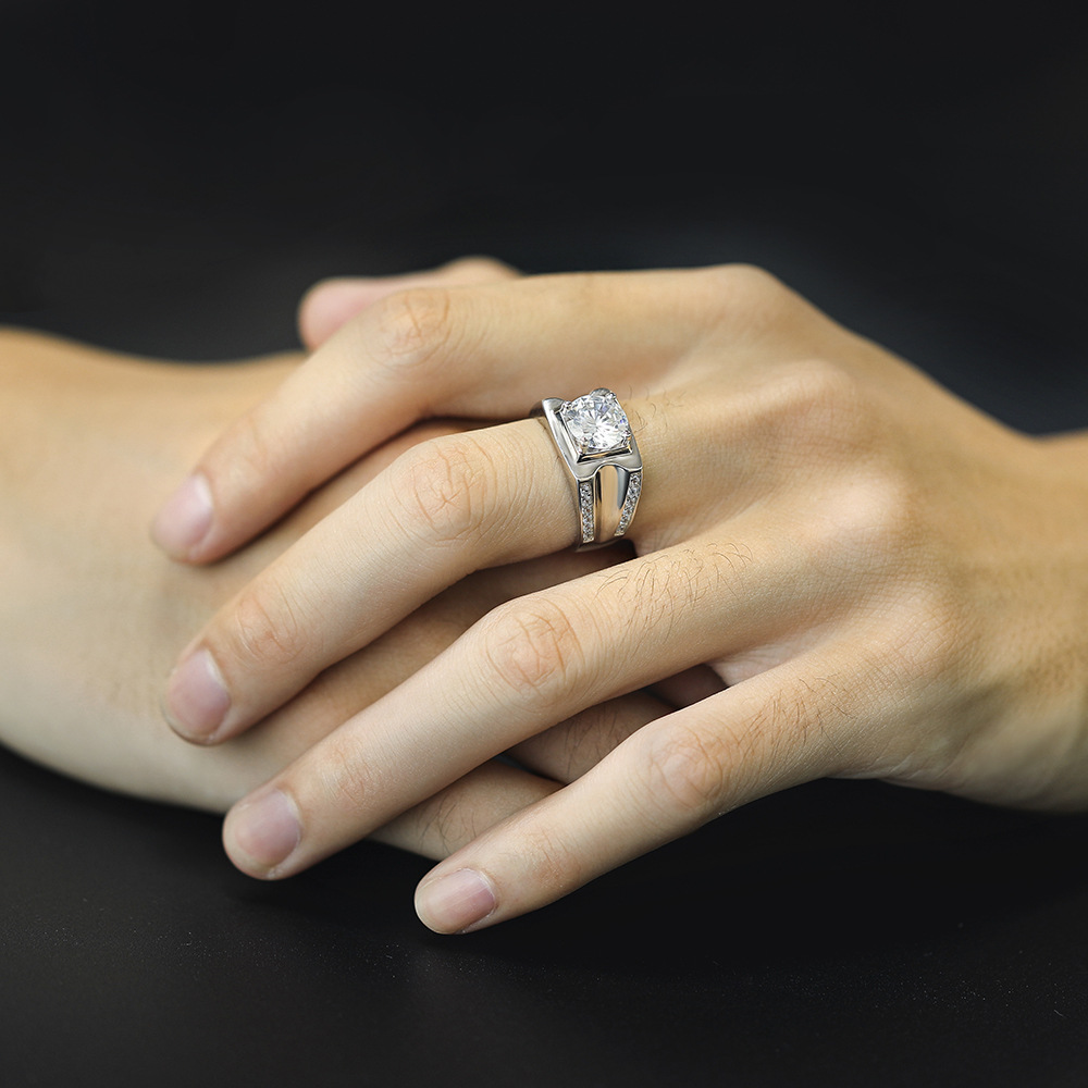 Fashion Diamond Sterling Silver Ring Men’s Simple Ring