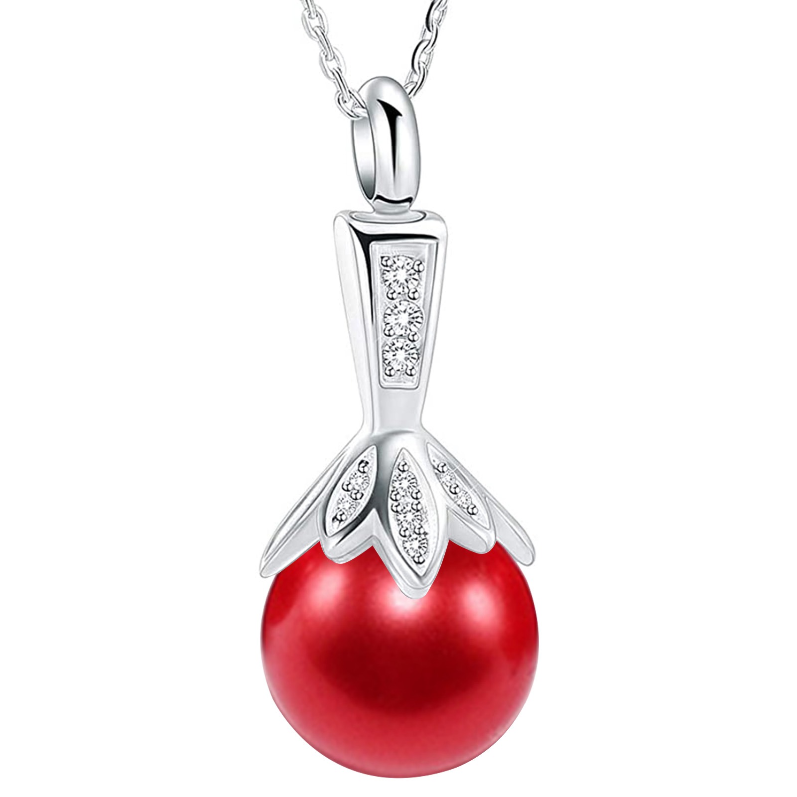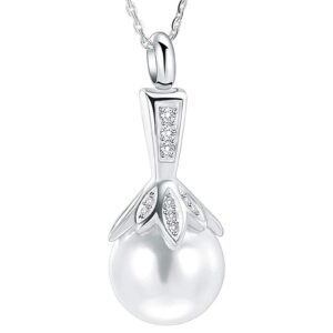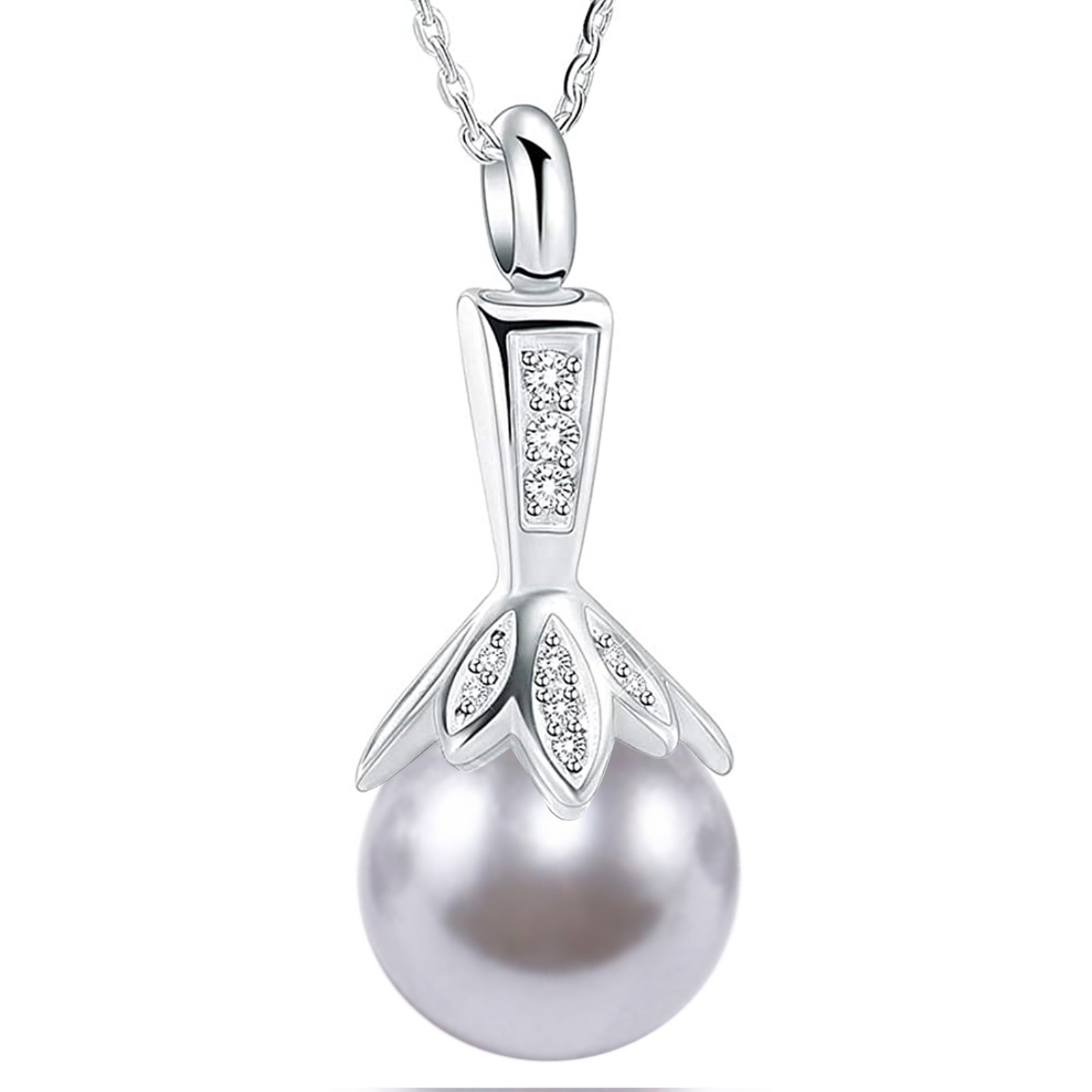 Fashion Elegant Pearl Pendant Necklace Cremation Urn Hold Ashes Keepsake Stainless Steel Memorial Jewelry Gift for Women Wife