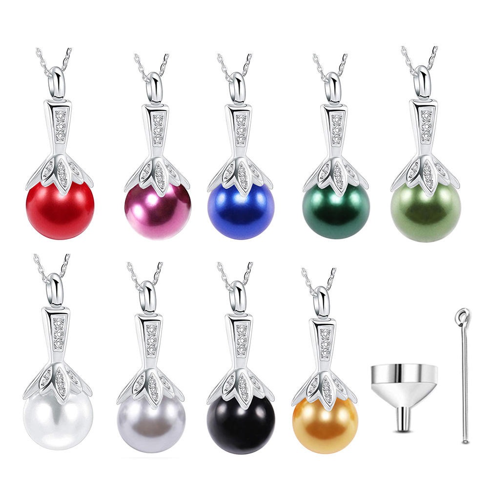 Fashion Elegant Pearl Pendant Necklace Cremation Urn Hold Ashes Keepsake Stainless Steel Memorial Jewelry Gift for Women Wife quantity