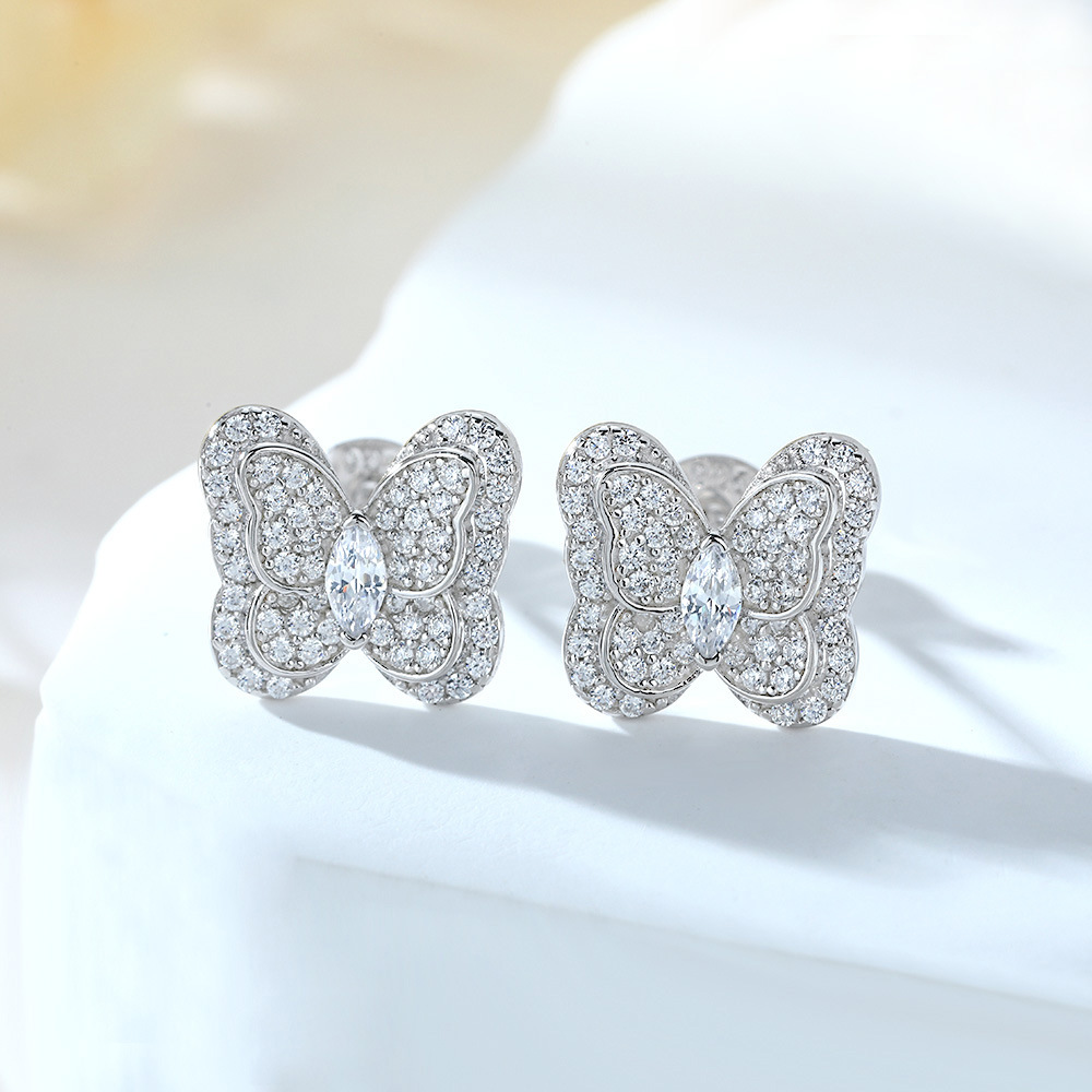 Fashion full diamond S925 sterling silver butterfly stud earrings