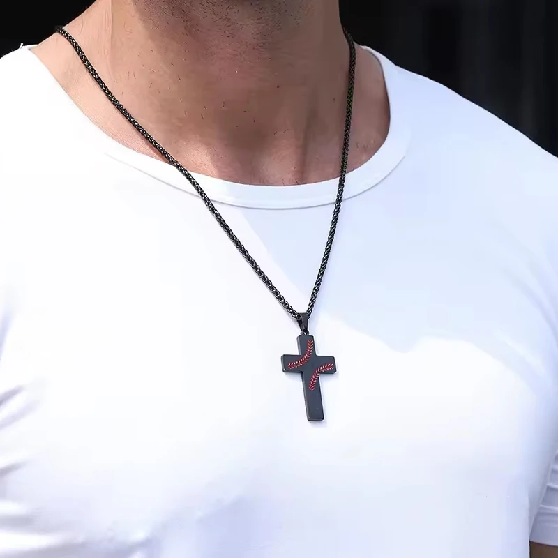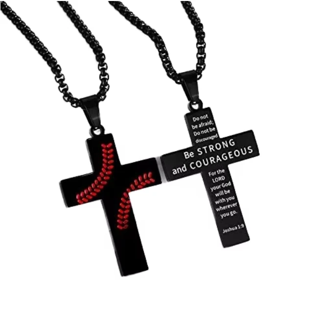 Fashion Jewelry Men's and Women's Bracelets Stainless Steel Necklace Bible Poetry Baseball Pendant Cross Commemorative Necklace quantity