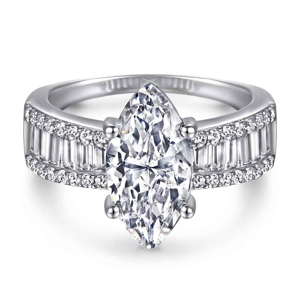 Fashion rings s925 silver micro inlaid ladder square marquise zircon women’s ring