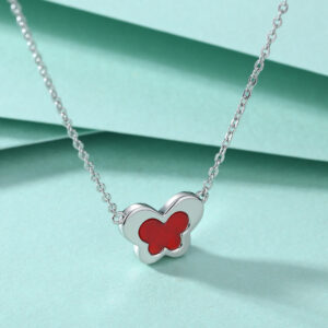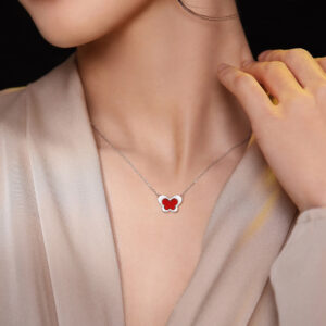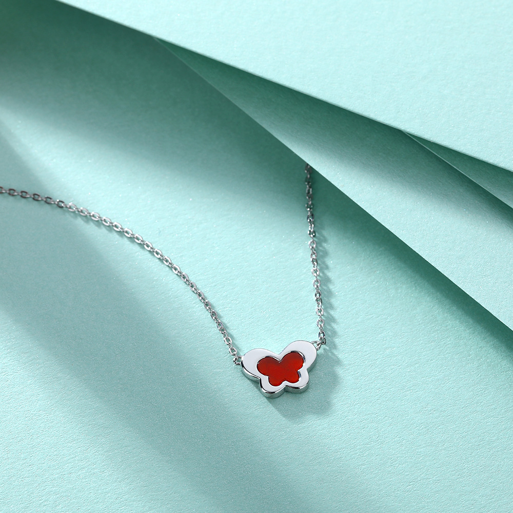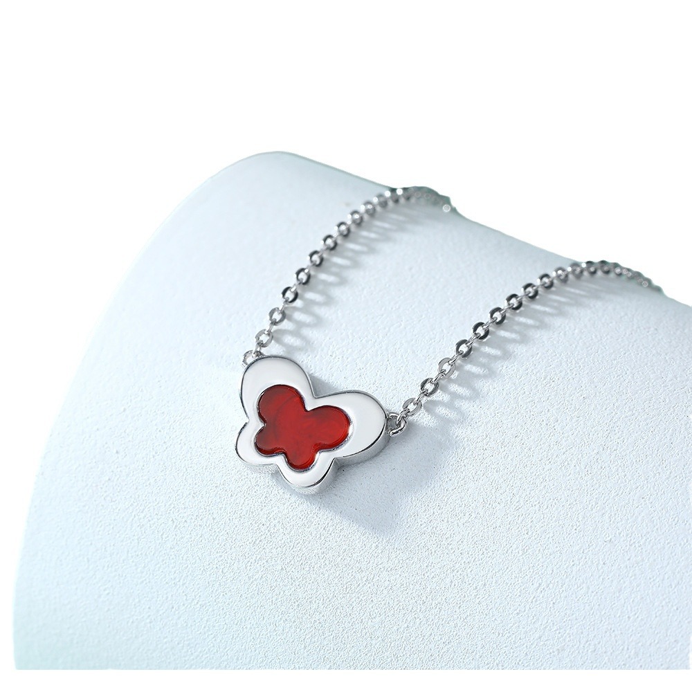 Fashion S925 sterling silver inlaid red agate butterfly necklace high-end three-dimensional versatile clavicle chain explosion