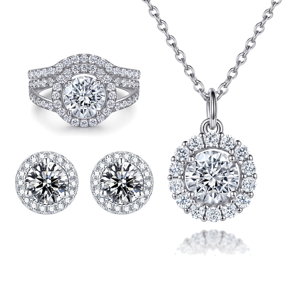 925 sterling silver jewelry set row of diamonds zircon ring European American earrings fashion necklace