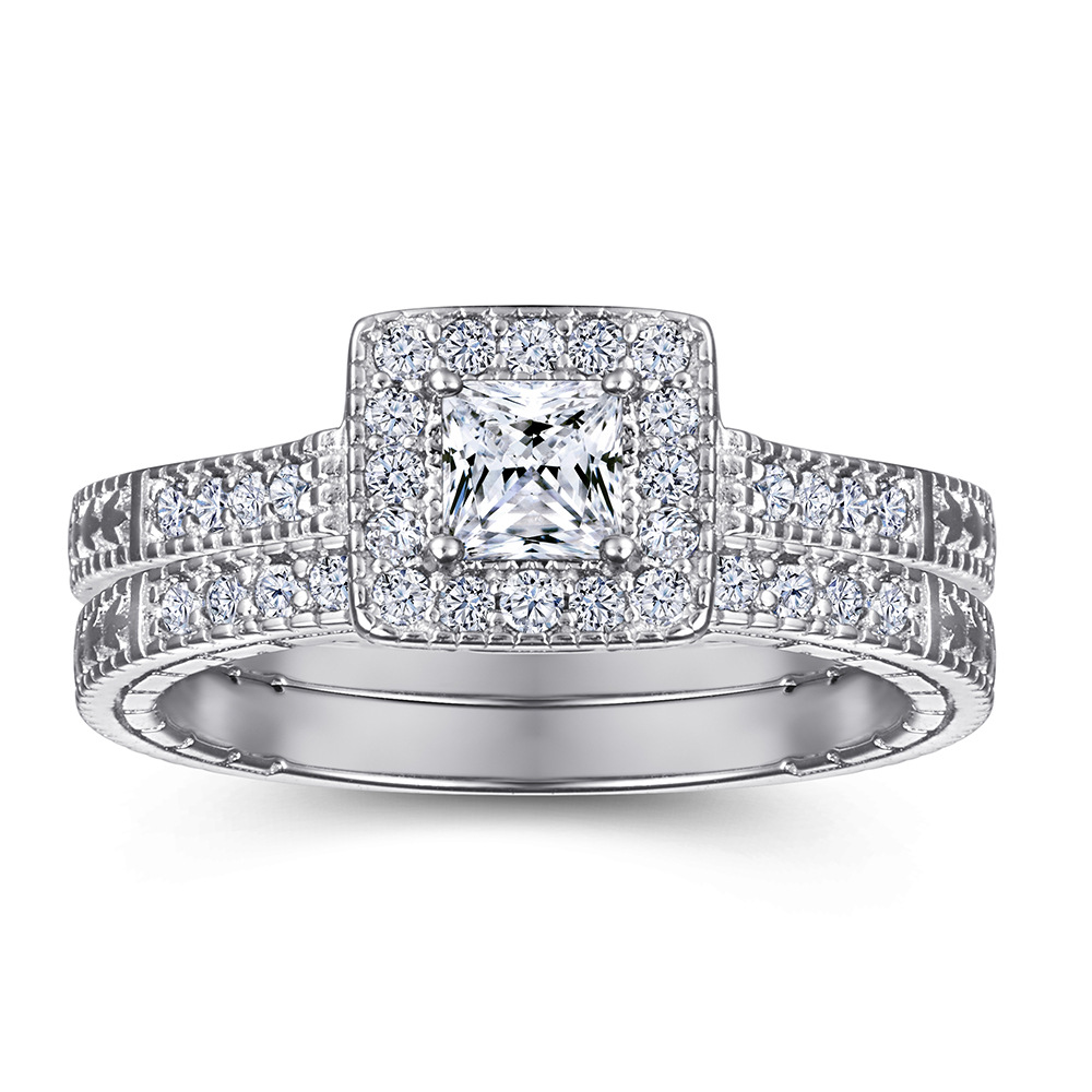 Fashion S925 sterling silver square diamond ring necklace stud jewelry set square earrings