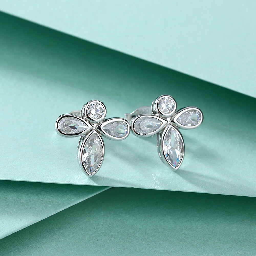 Fashion sterling silver butterfly bee shaped stud earrings female cute zircon S925 silver earrings