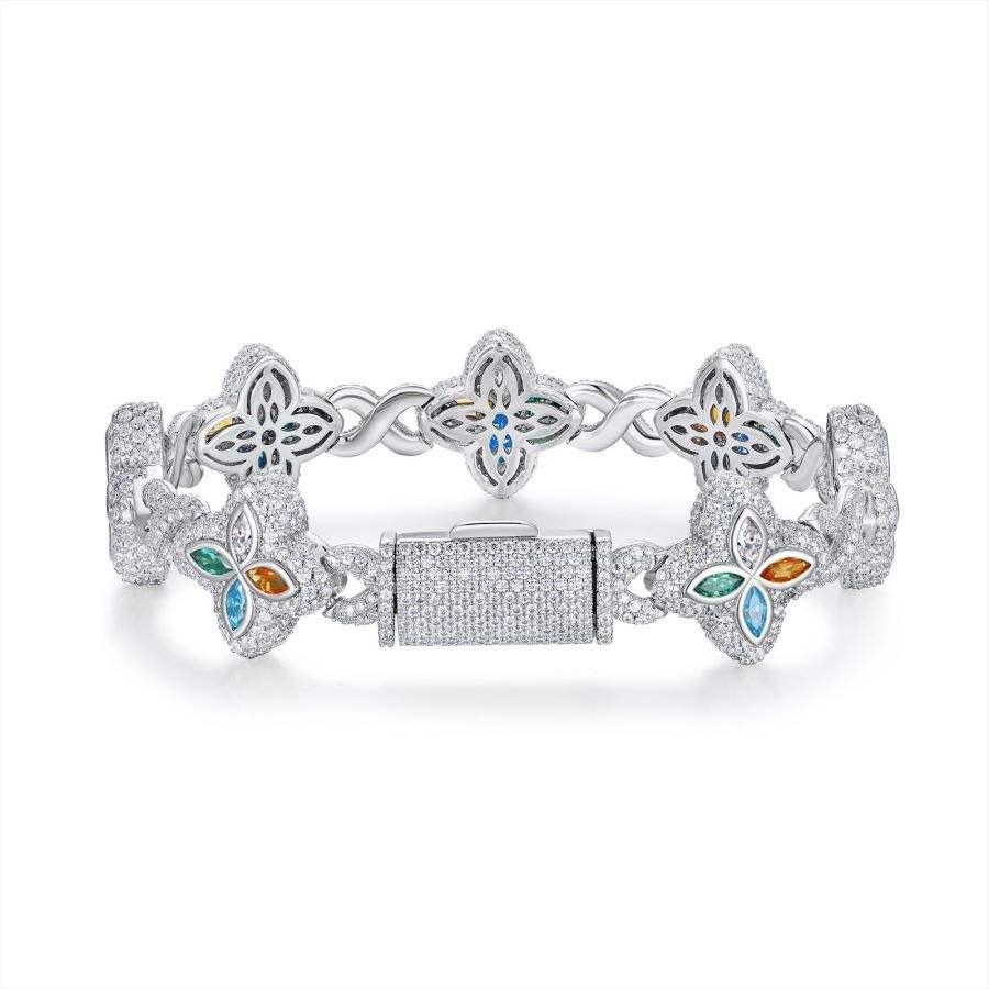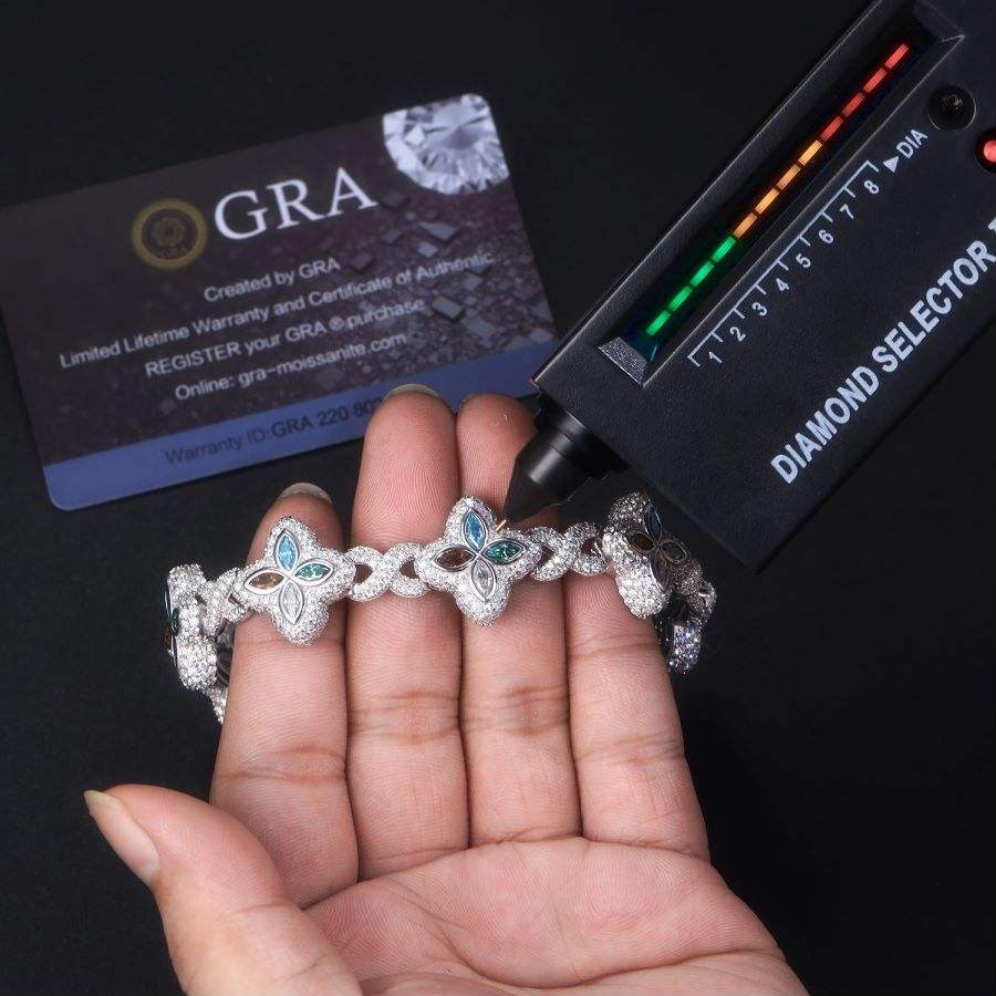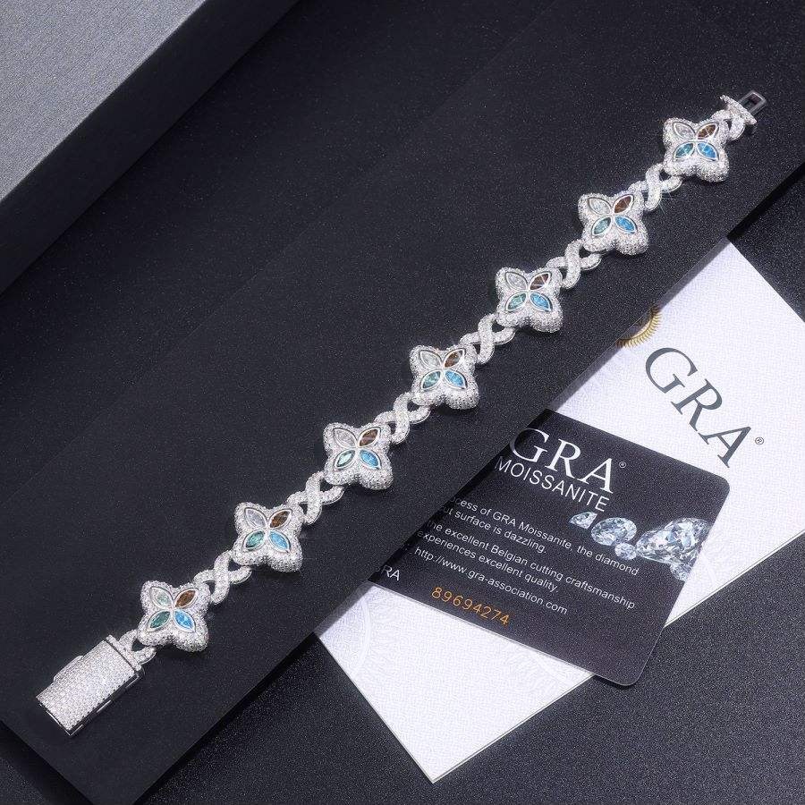 Fashionable 925 Silver Chain Bracelet with Moissanite & Four-Leaf Clover Design – Stylish Hip Hop Gift for Birthdays, Unisex