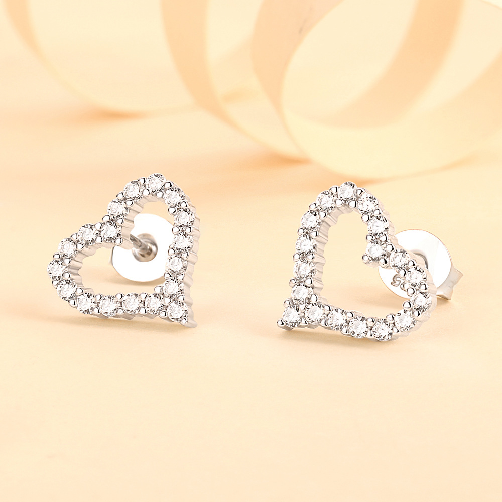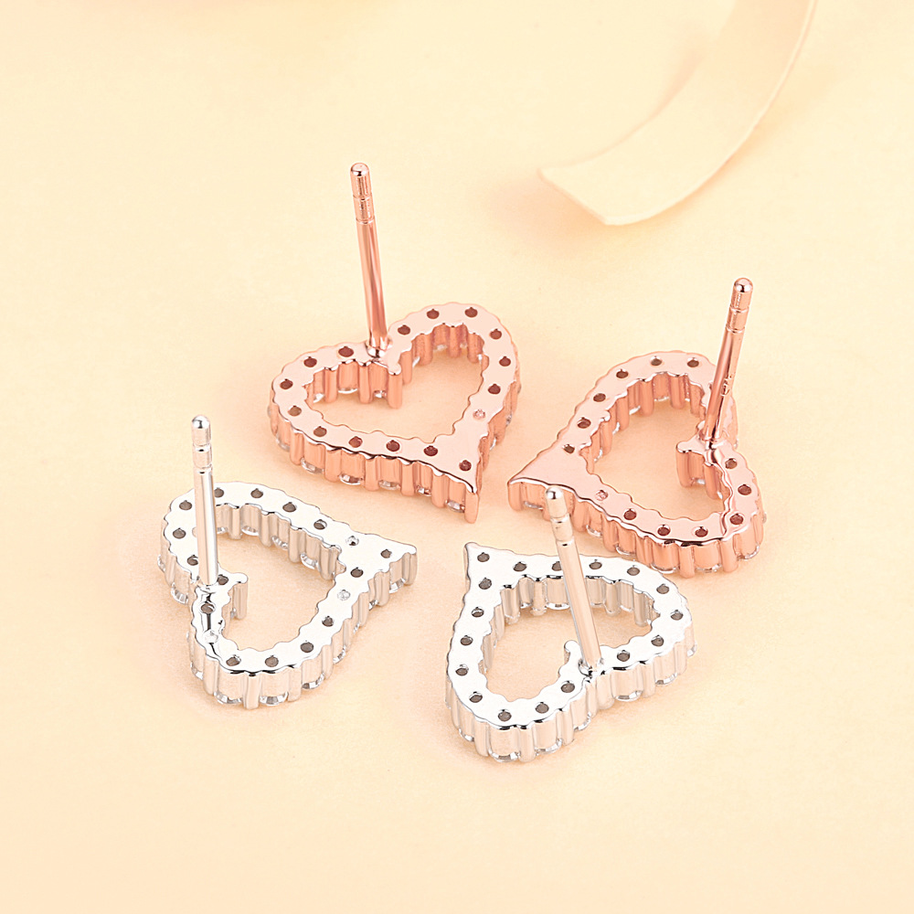 Fashionable European and American love sterling silver stud earrings heart-shaped earrings feminine temperament earrings high-end sense niche wholesale