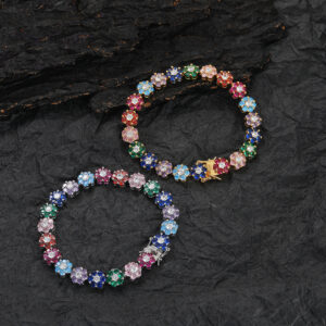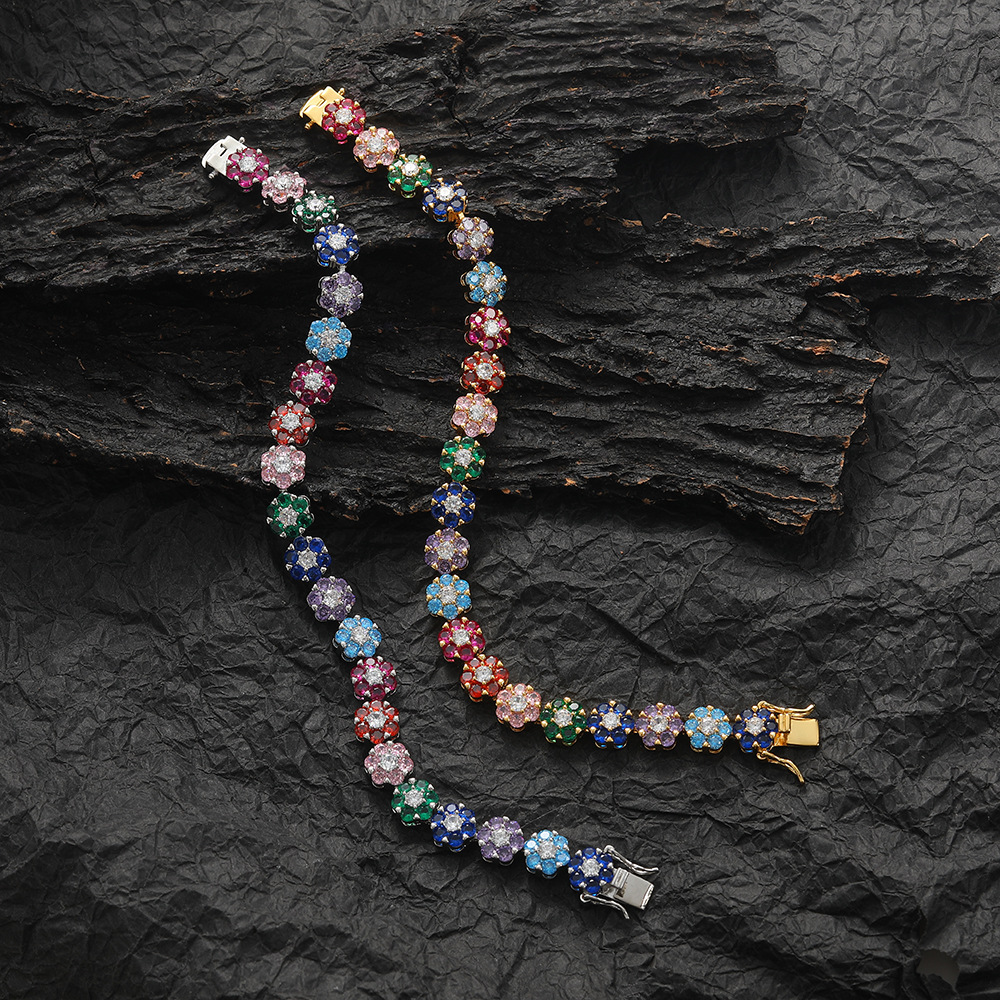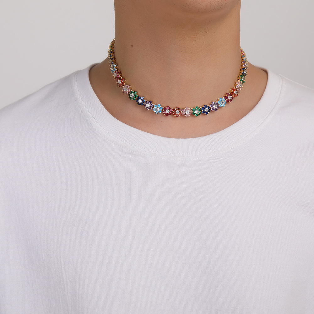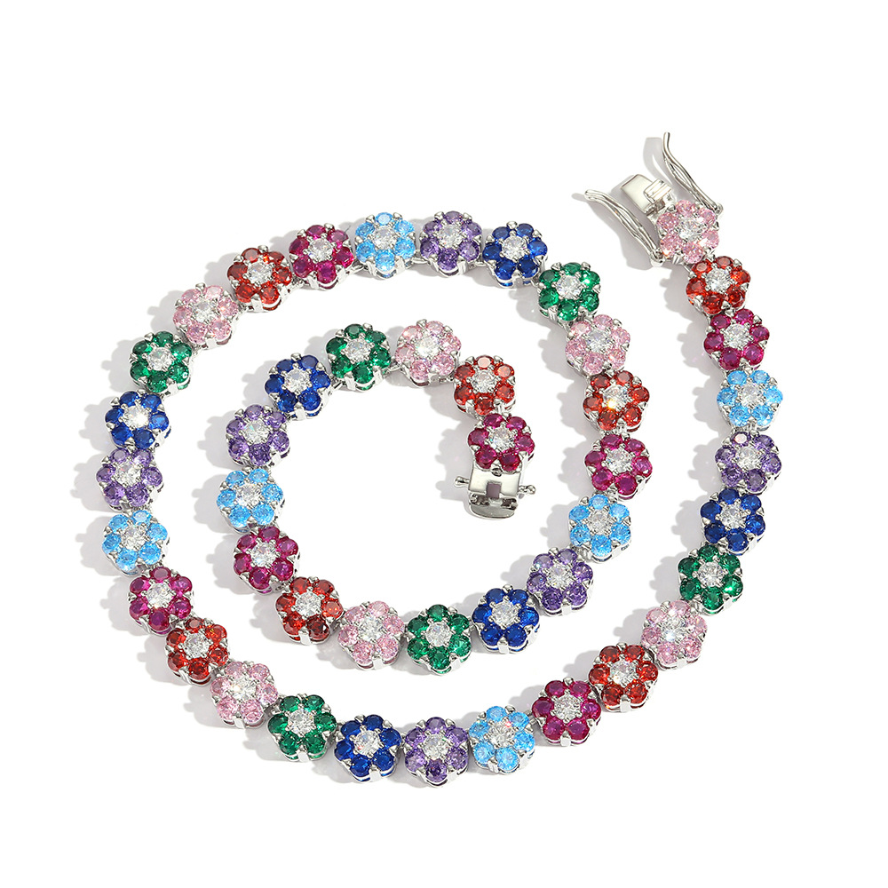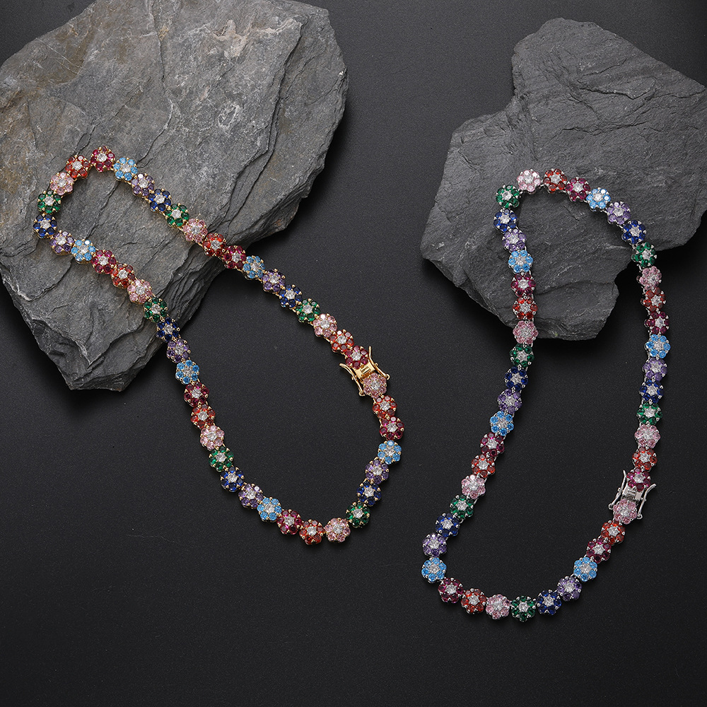 Hip Hop Copper Inlaid Zircon 9mm Color Flower Shape Single Row Tennis Chain Necklace