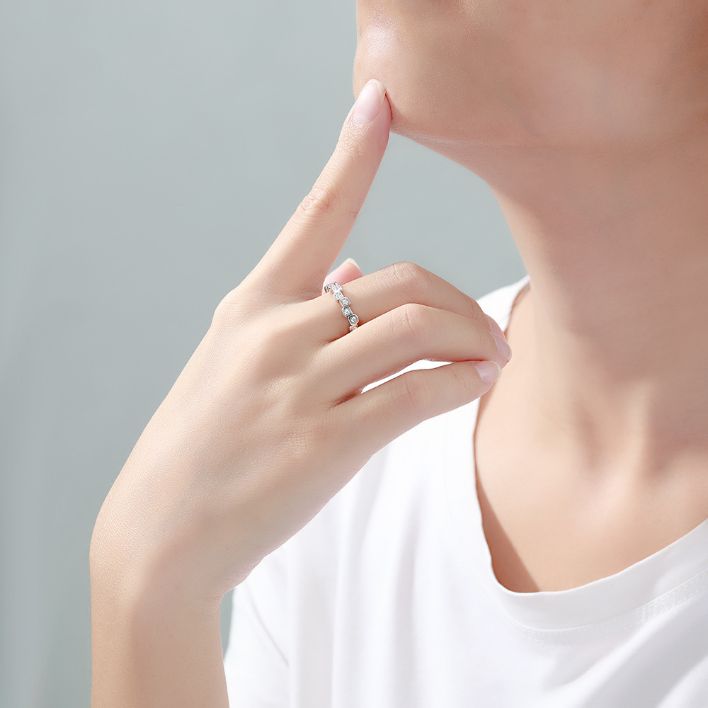 Full Diamond Single Row Ring 925 Sterling Silver Ring Women’s Niche Design European and American Creative Pure Silver Wedding Ring Women’s Ring