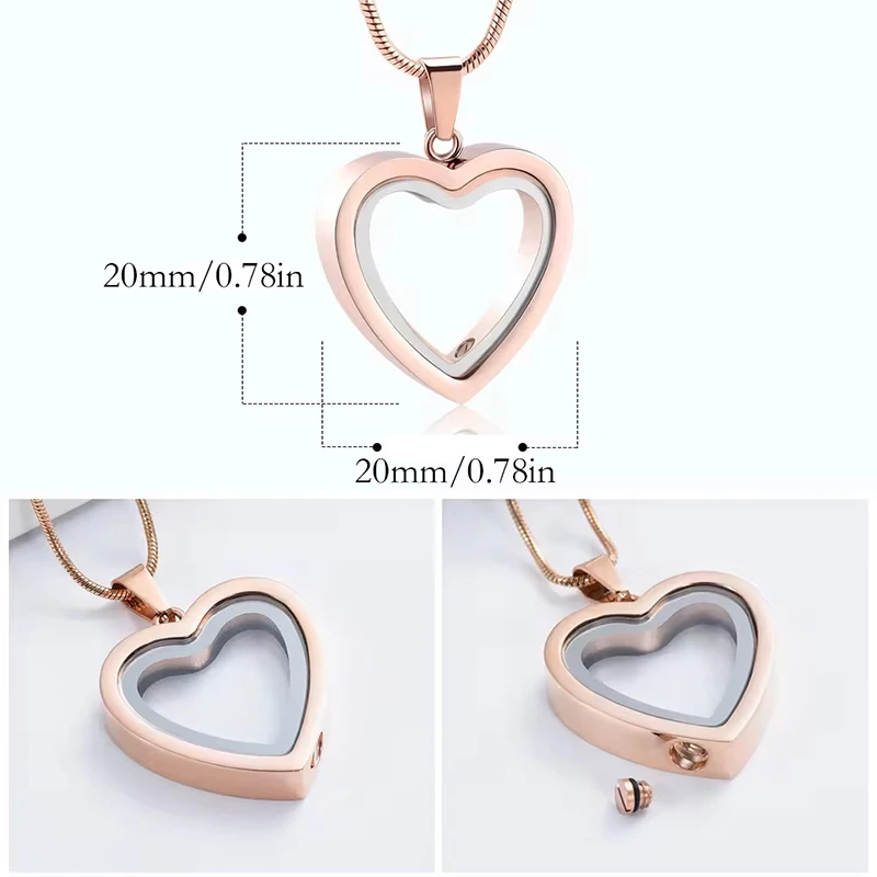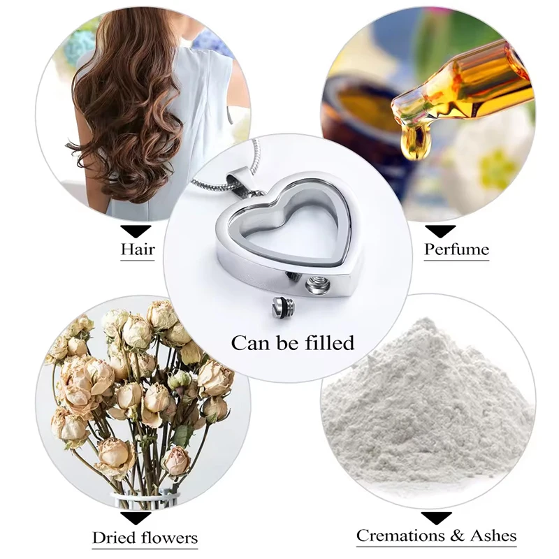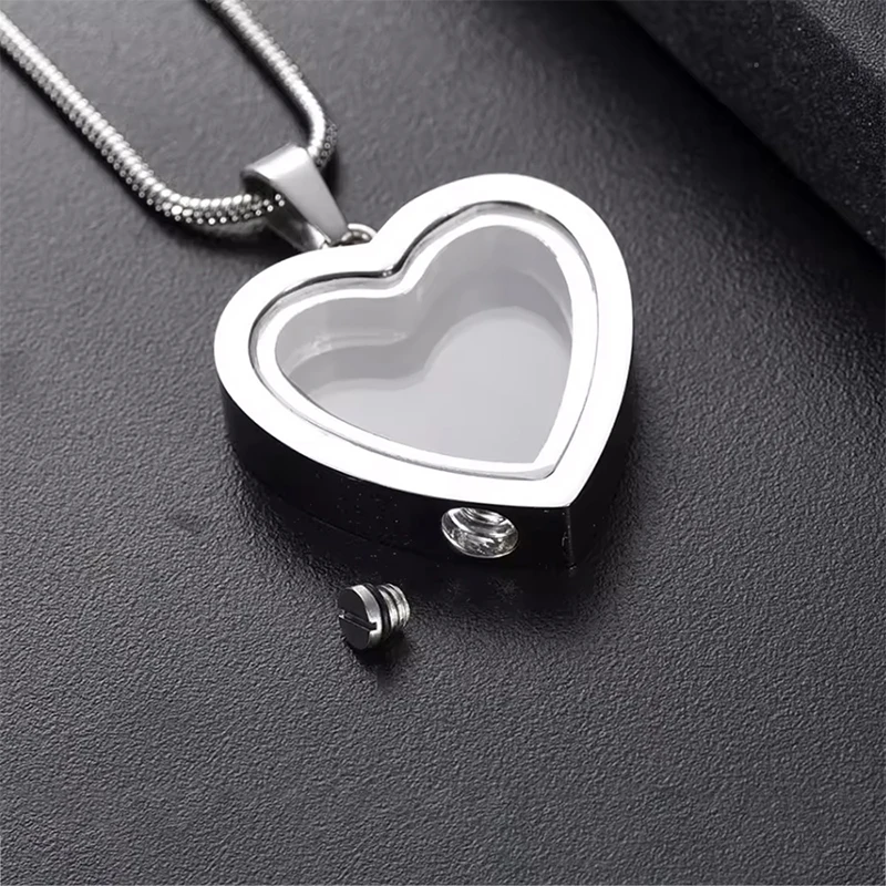 Glass Cremation Jewelry Necklace for Ashes Heart Memorial Lockets for Ashes Stainless Steel Keepsake Urn Ashes Pendants