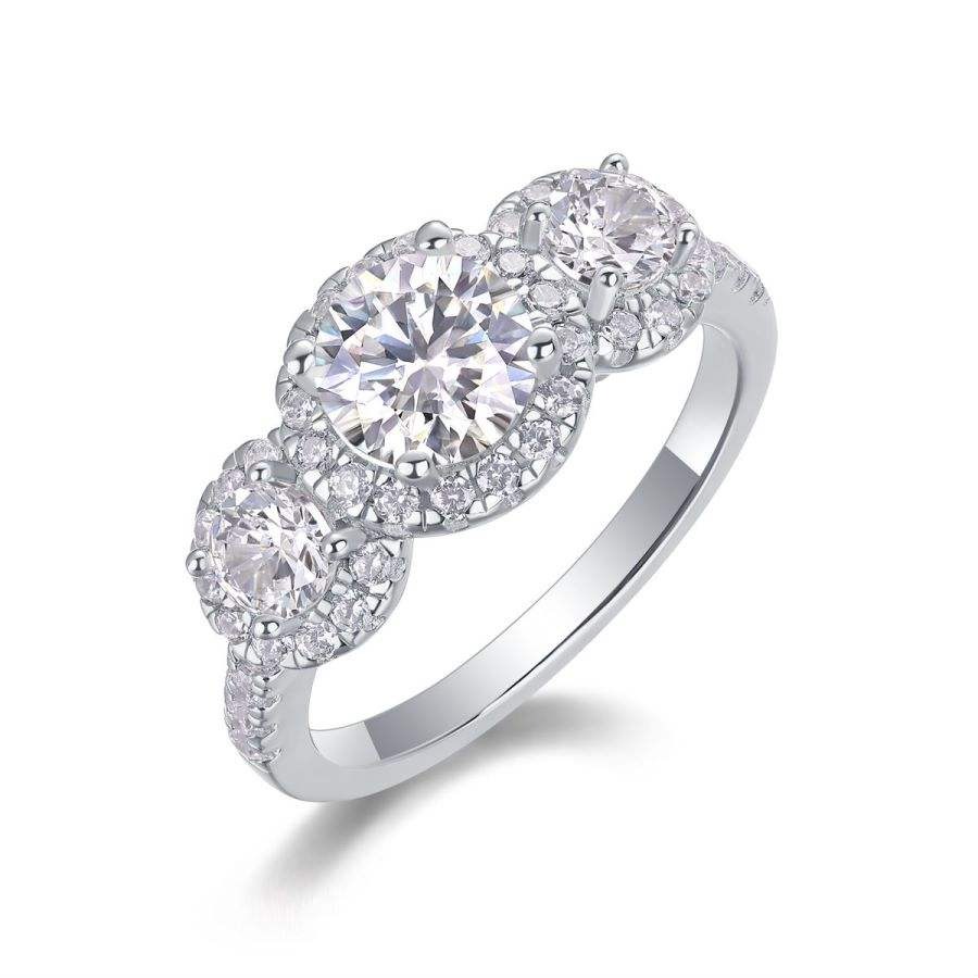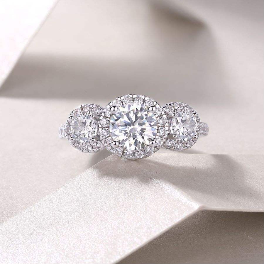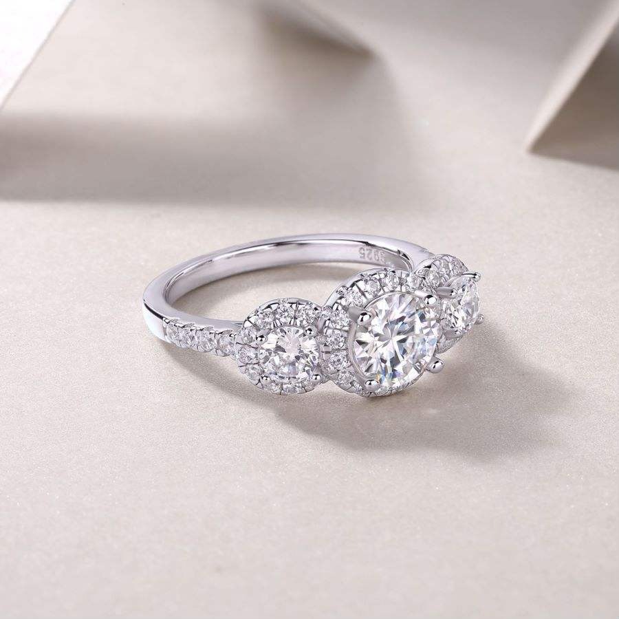 GRA Certified 1CT Moissanite Ring VVS1 Lab Diamond 3-Stone Women’s Engagement Commitment Wedding Jewelry