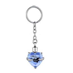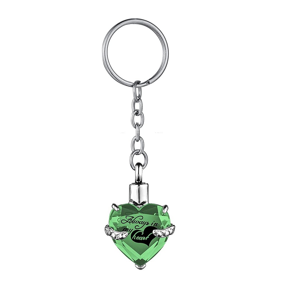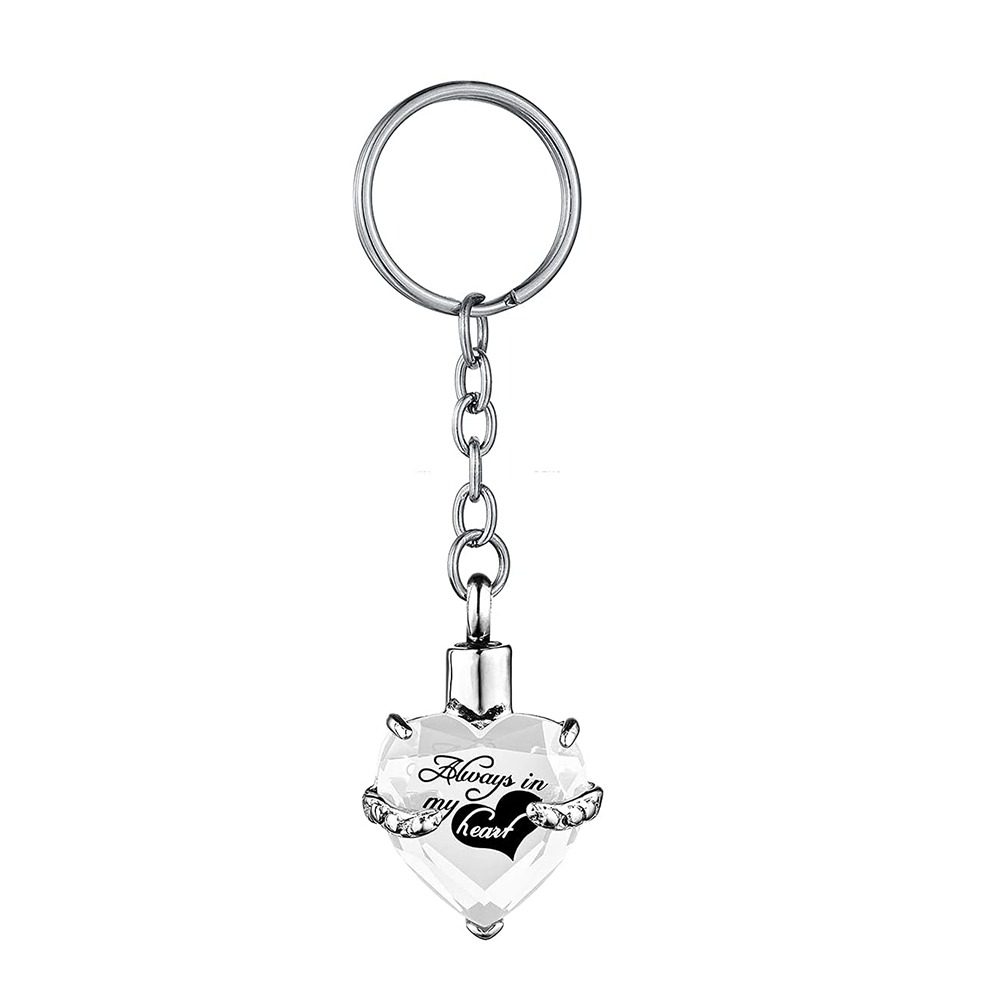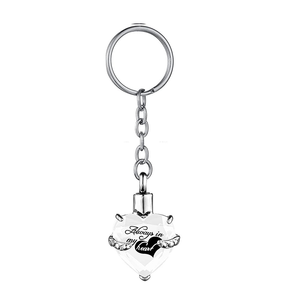 Heart shape Crystal Pendant KeyChain Cremation Urn Memorial for Human Pets Ashes KeyRing Men Women Jewelry – Always in my heart