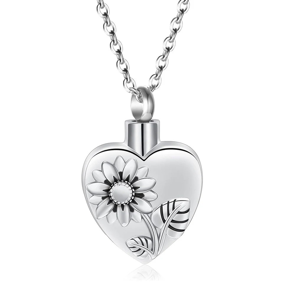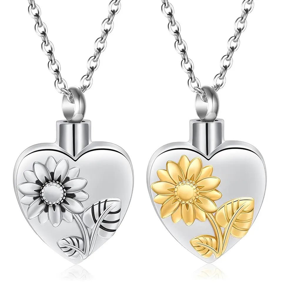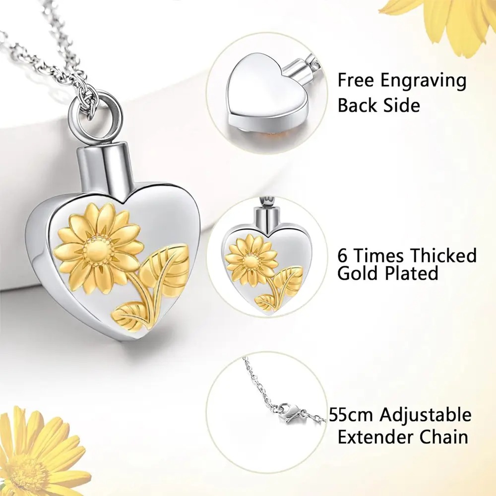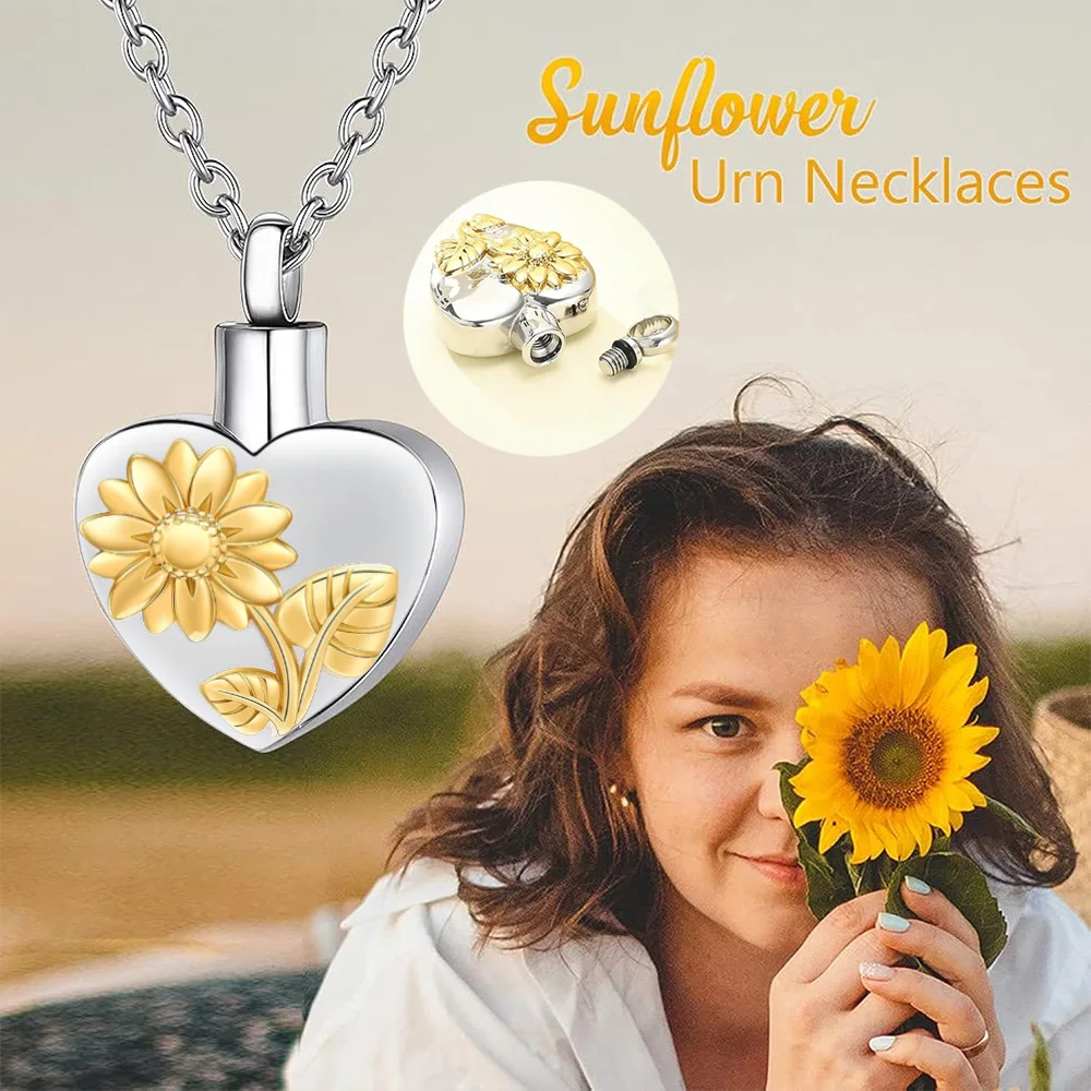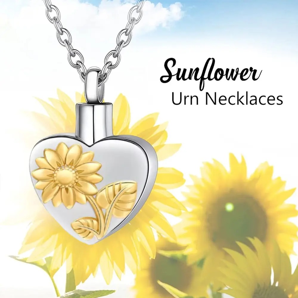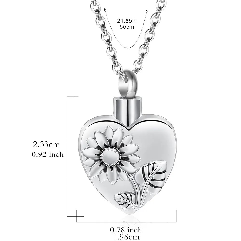 Heart Sunflower Cremation Urn Jewelry for Ashes for Pets Keepsake Stainless Steel Memorial Pendant Cremation Urn Necklace