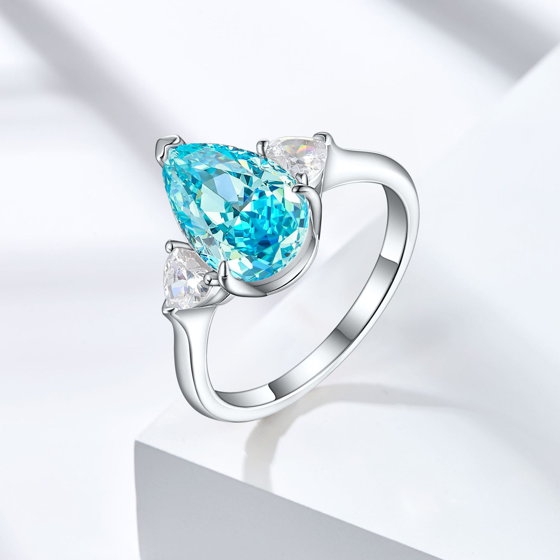 High-grade 925 sterling silver 4ct flame ice flower cut pear-shaped ring women’s high-end color gem 8*12 high carbon diamond ring