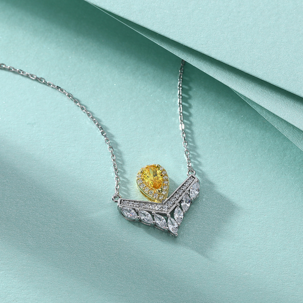 High-grade zircon gemstone pendant V-shaped crown S925 silver necklace women’s niche high-end European and American sterling silver clavicle chain