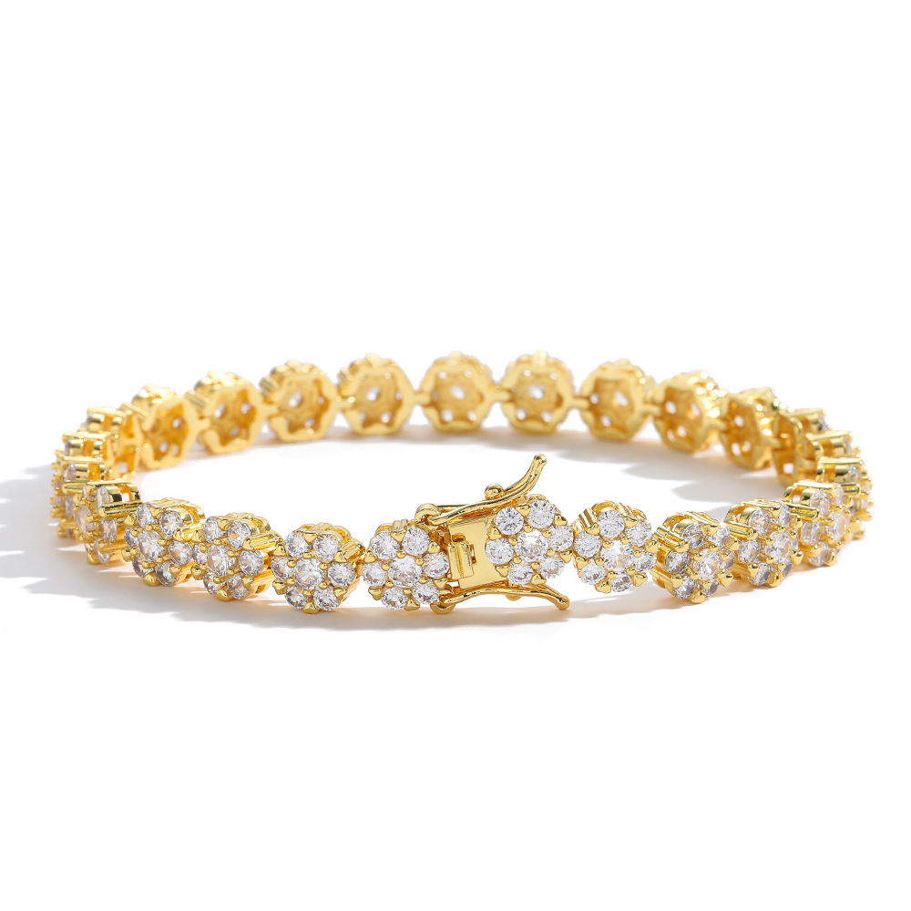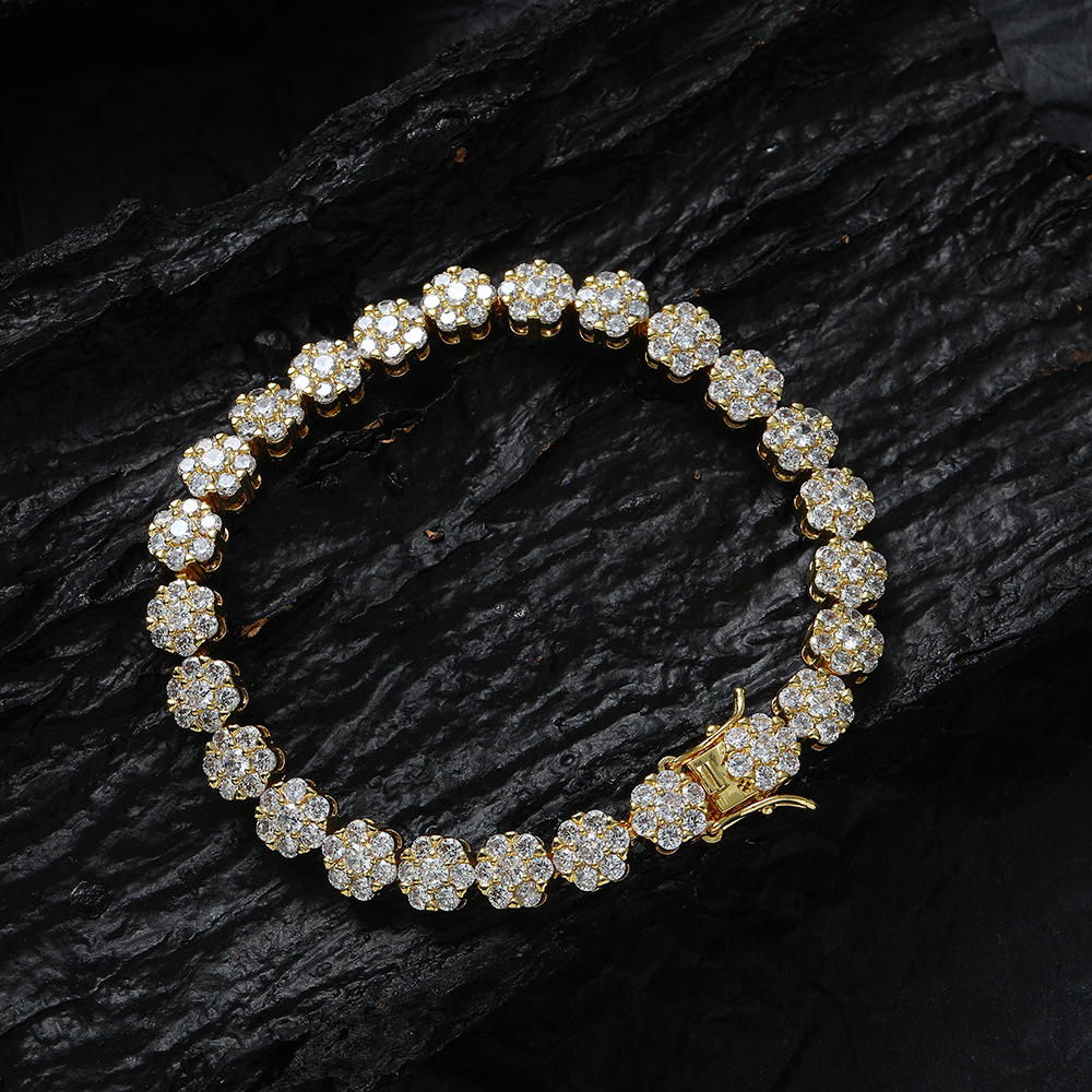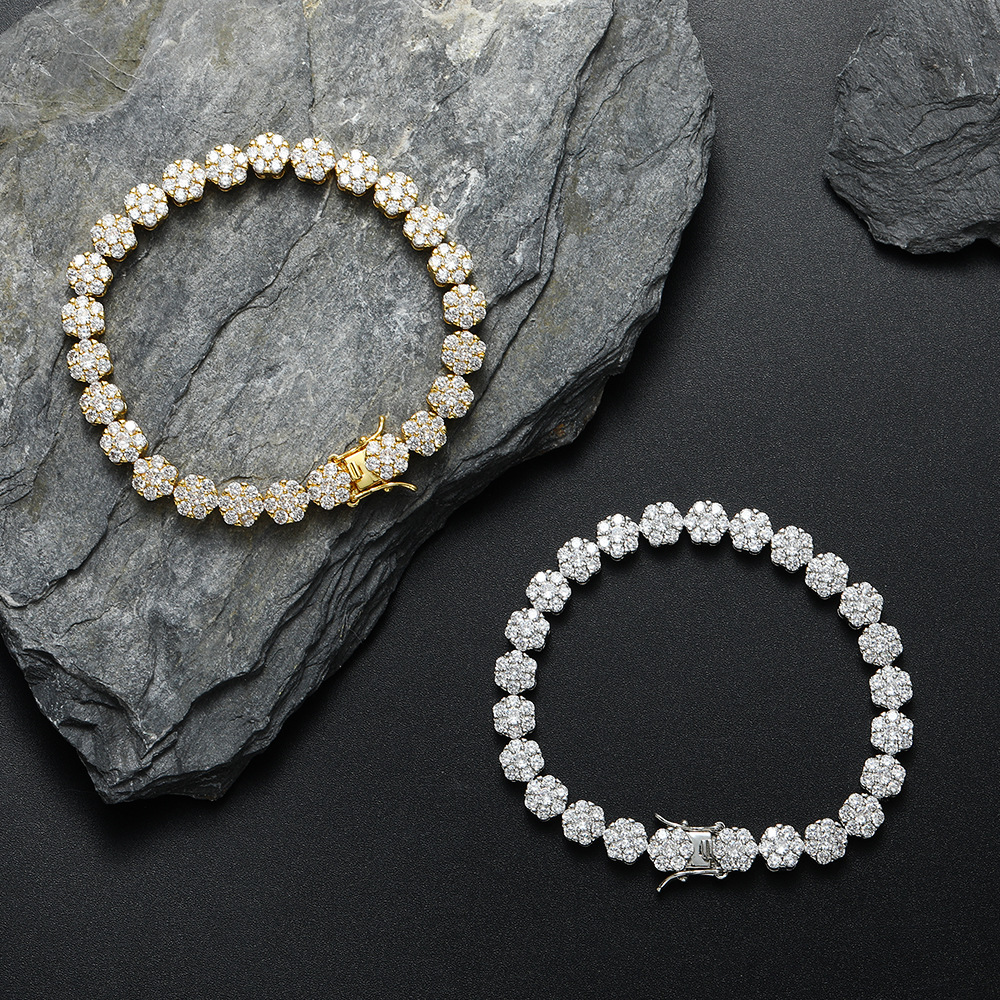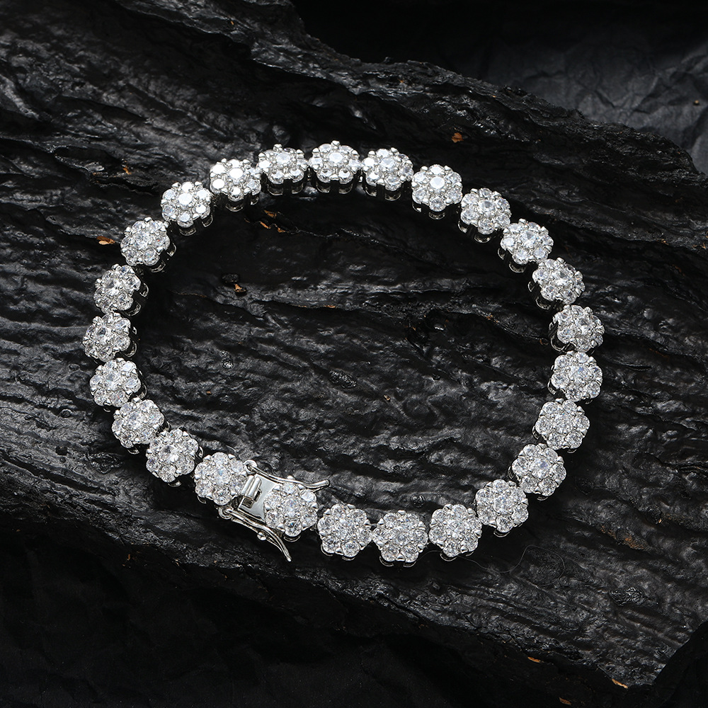 Hip Hop Bracelet 8mm Copper Inlaid Zircon Flower Shape Bracelet