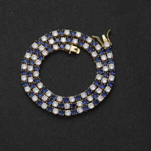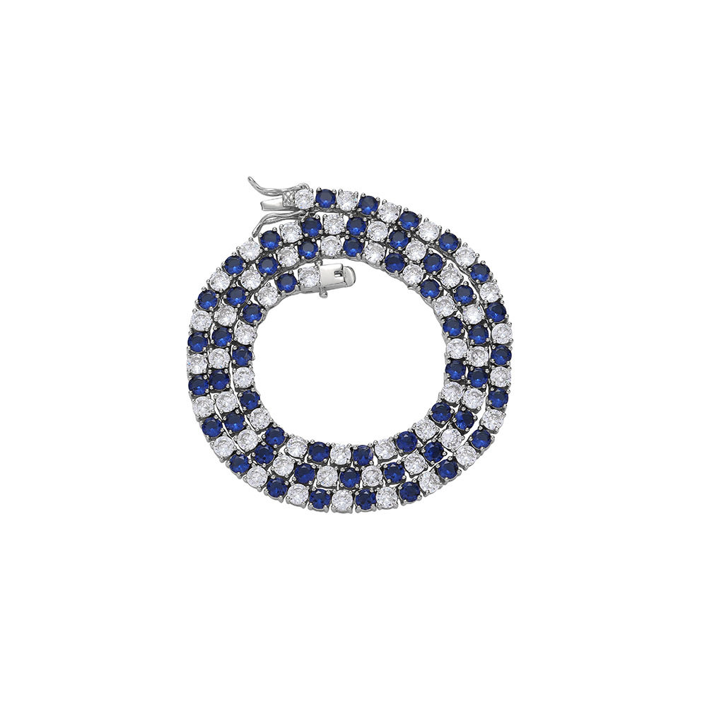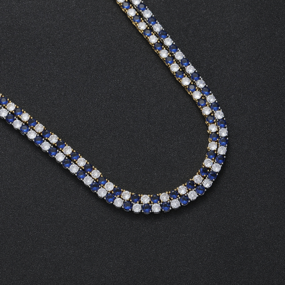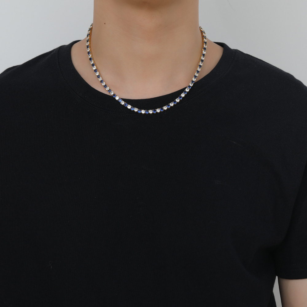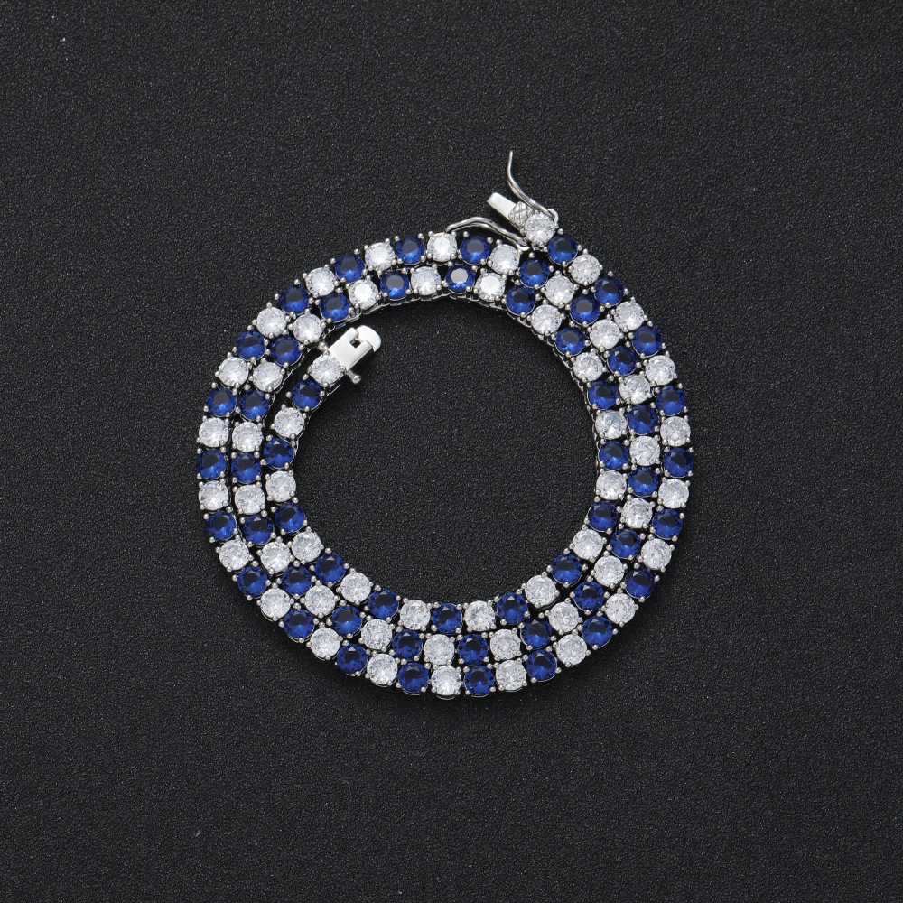 Hip Hop copper inlaid with zircon blue white spaced single row tennis chain necklace bracelet
