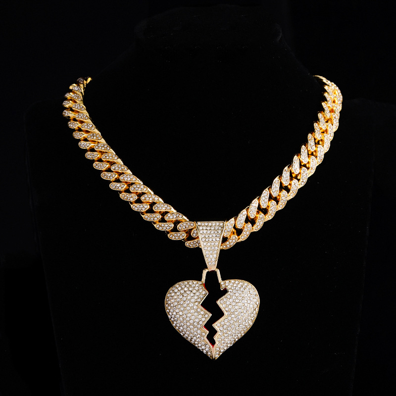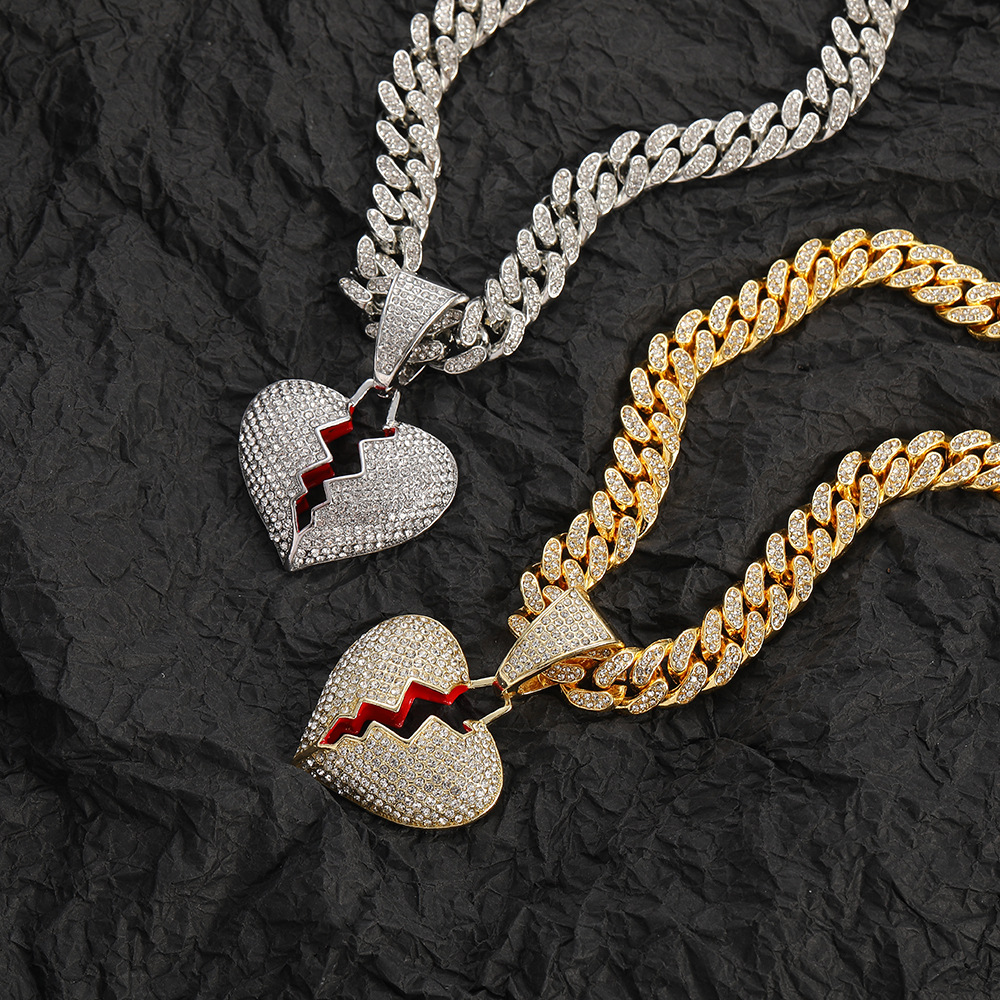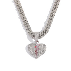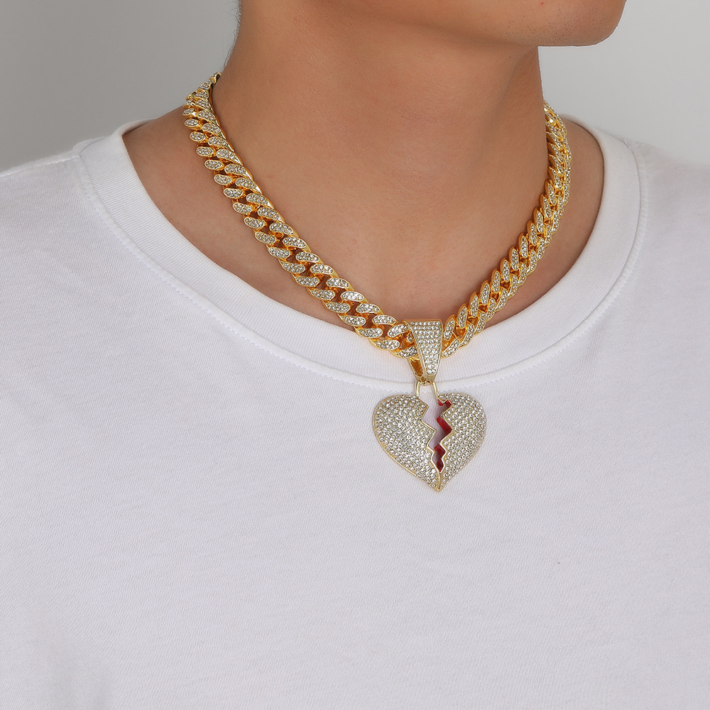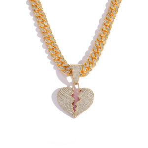 Hip Hop copper inlaid with zirconia Cuban necklace heartbreak shape pendant