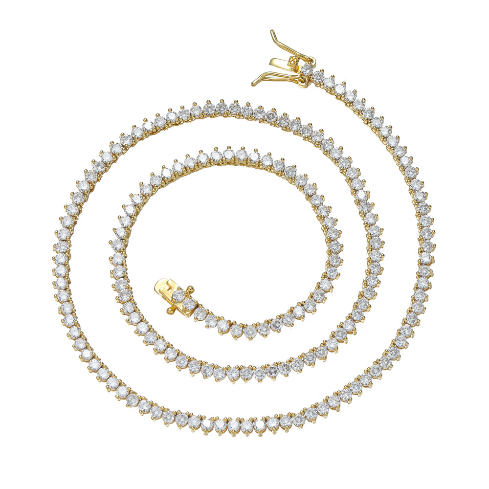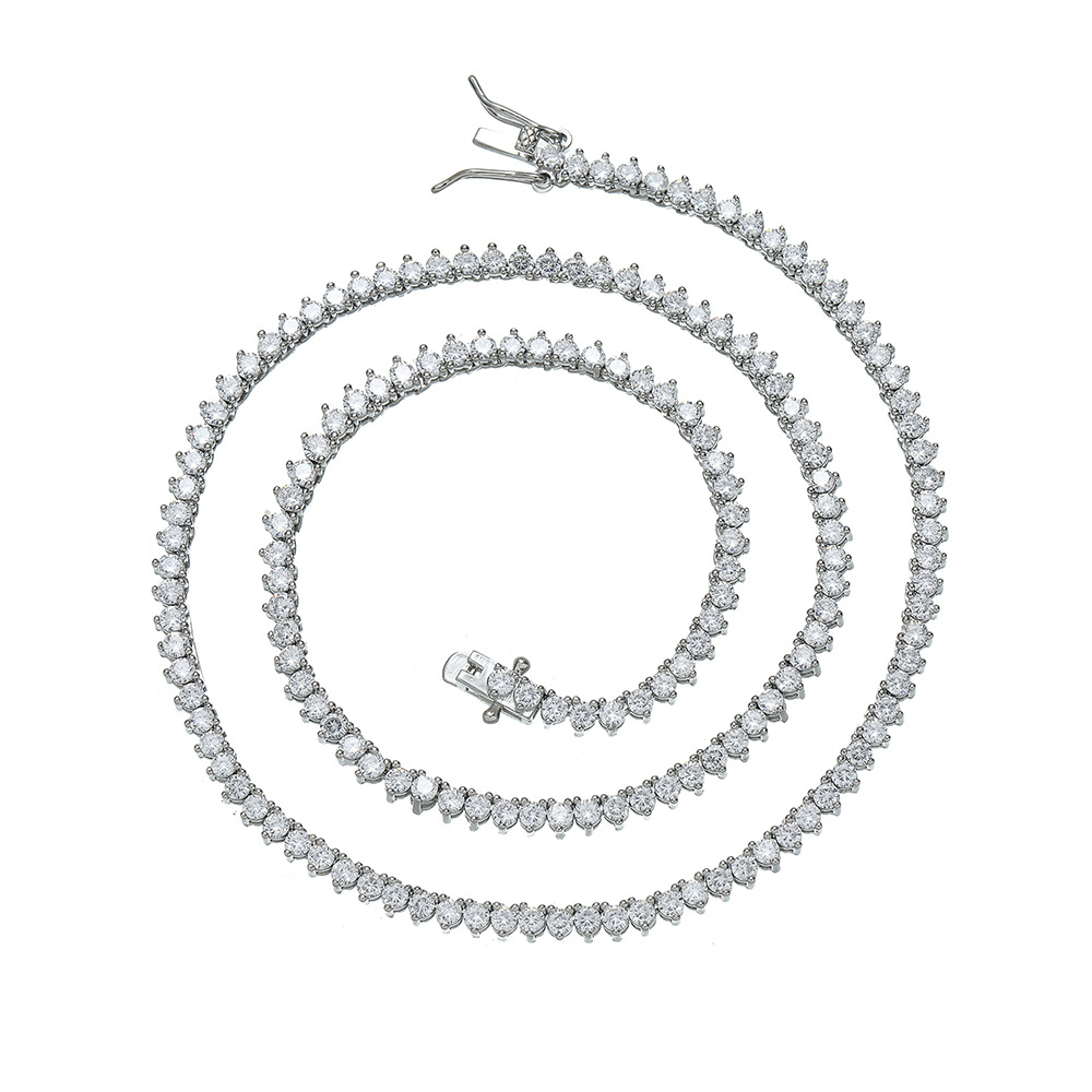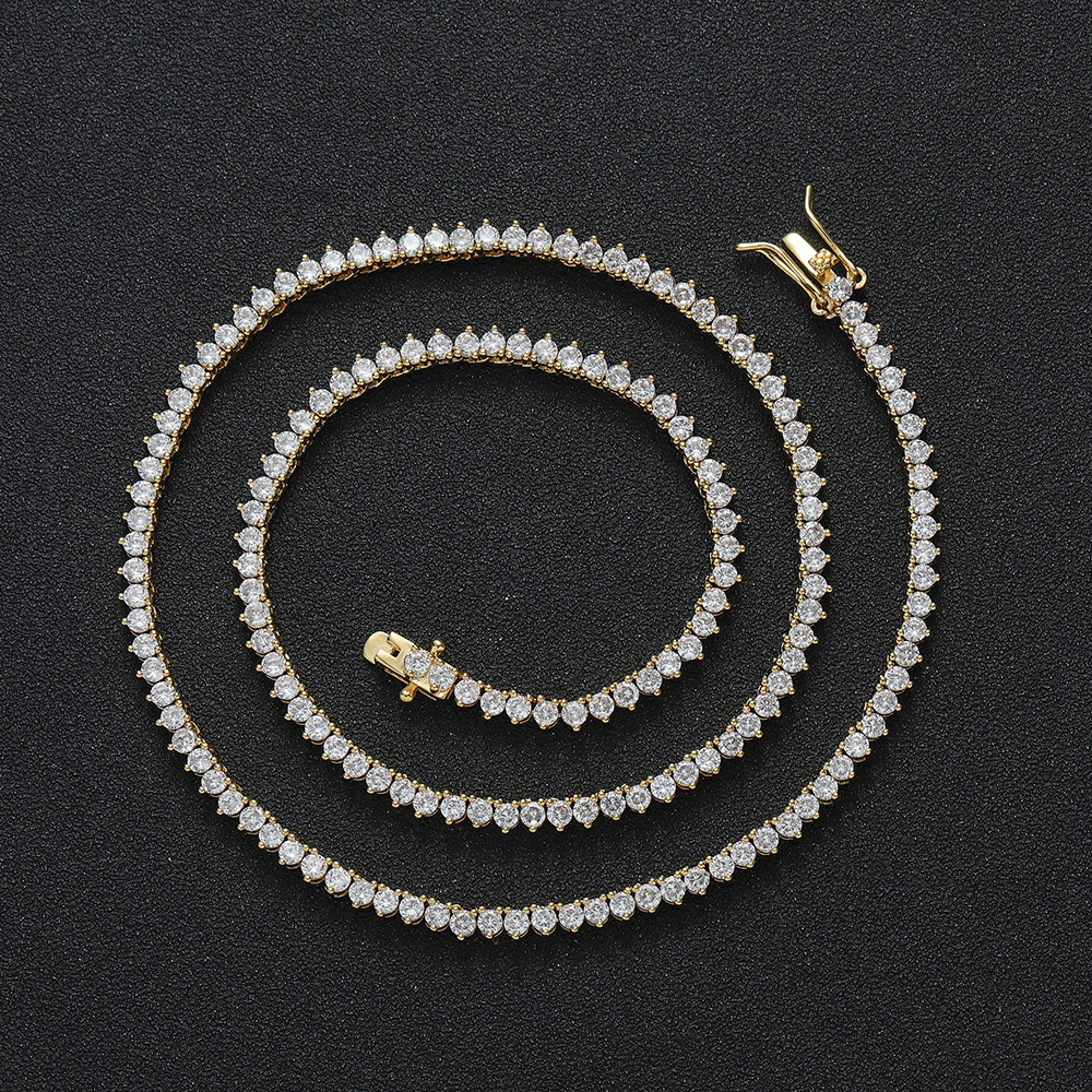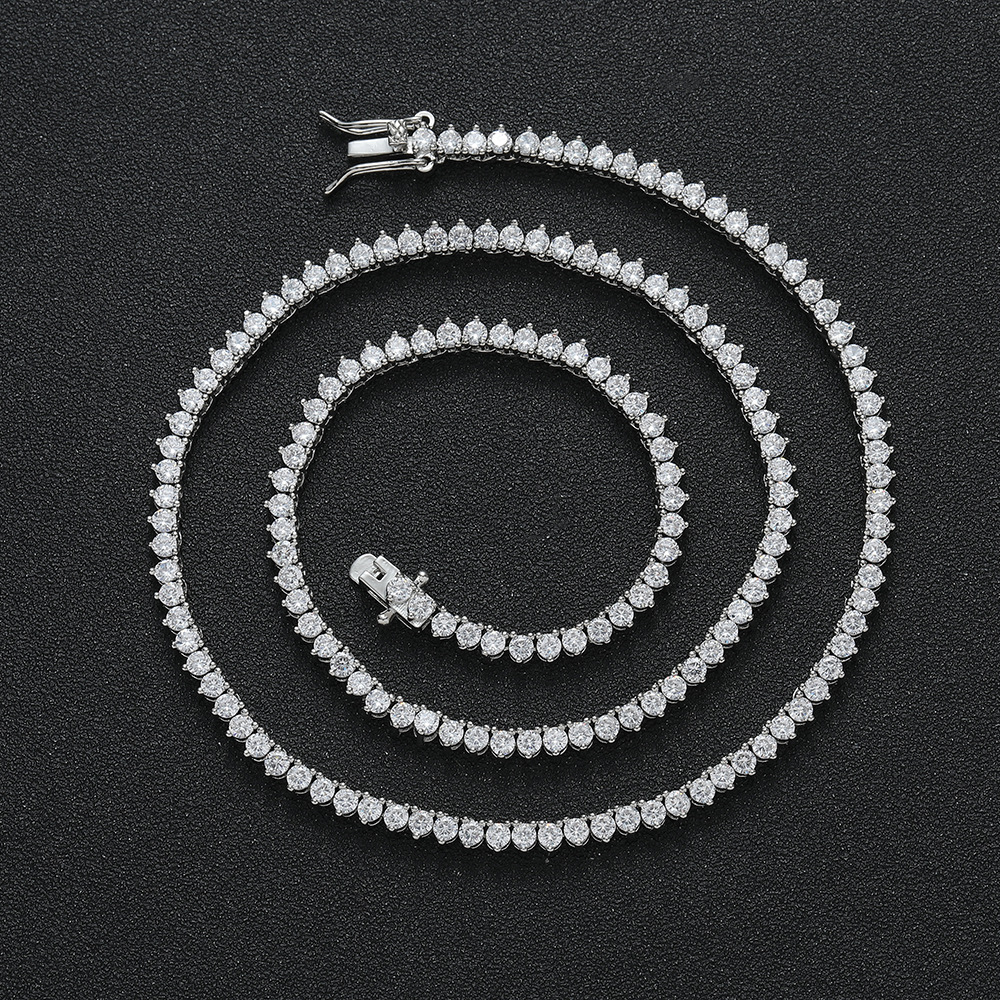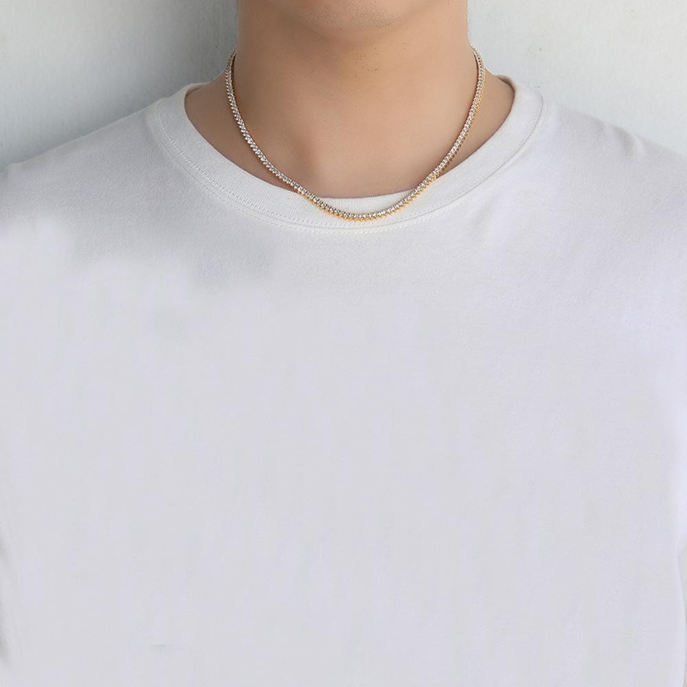 Hip Hop Copper Inlaid Zircon 2.5mm Single Row Tennis Chain Necklace