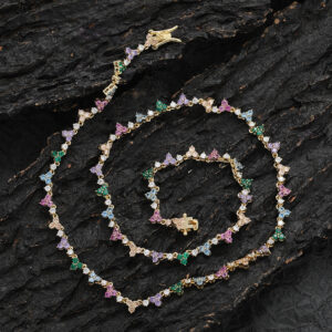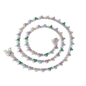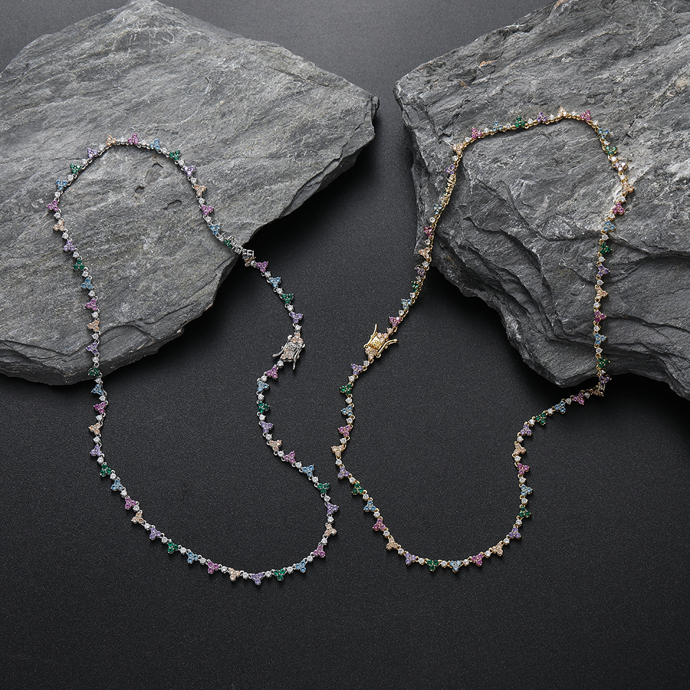 + Free ShippingHip Hop Copper Inlaid Zircon 2mm Color Mix Flower Shape Single Row Tennis Chain Necklace