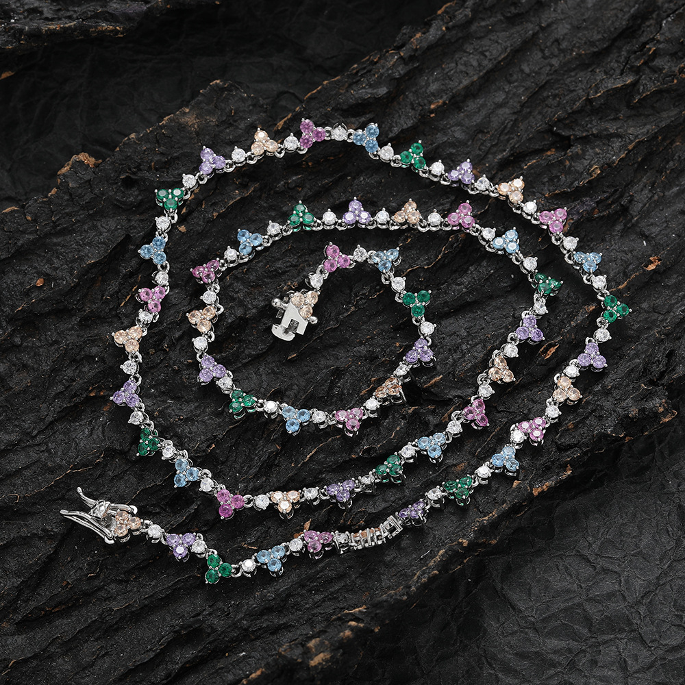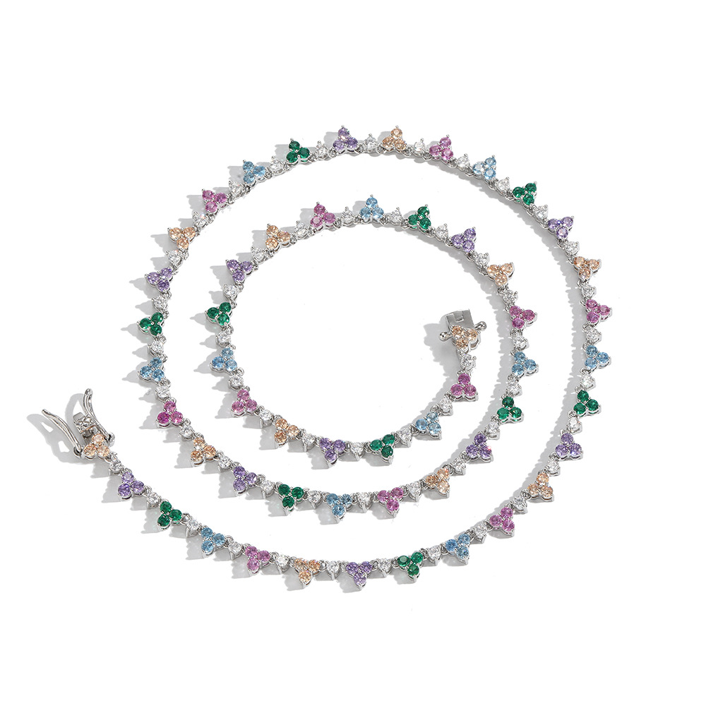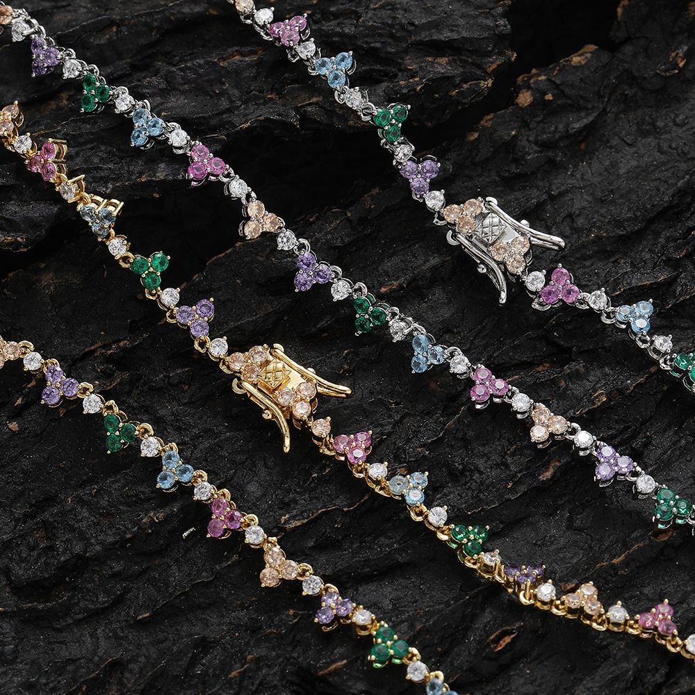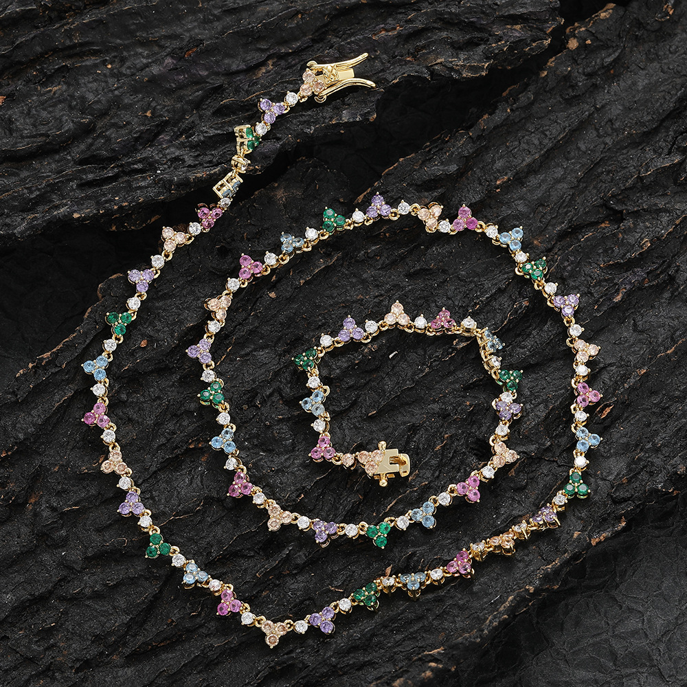 Hip Hop Copper Inlaid Zircon 2mm Color Mix Flower Shape Single Row Tennis Chain Necklace
