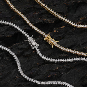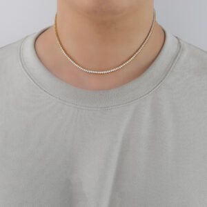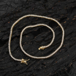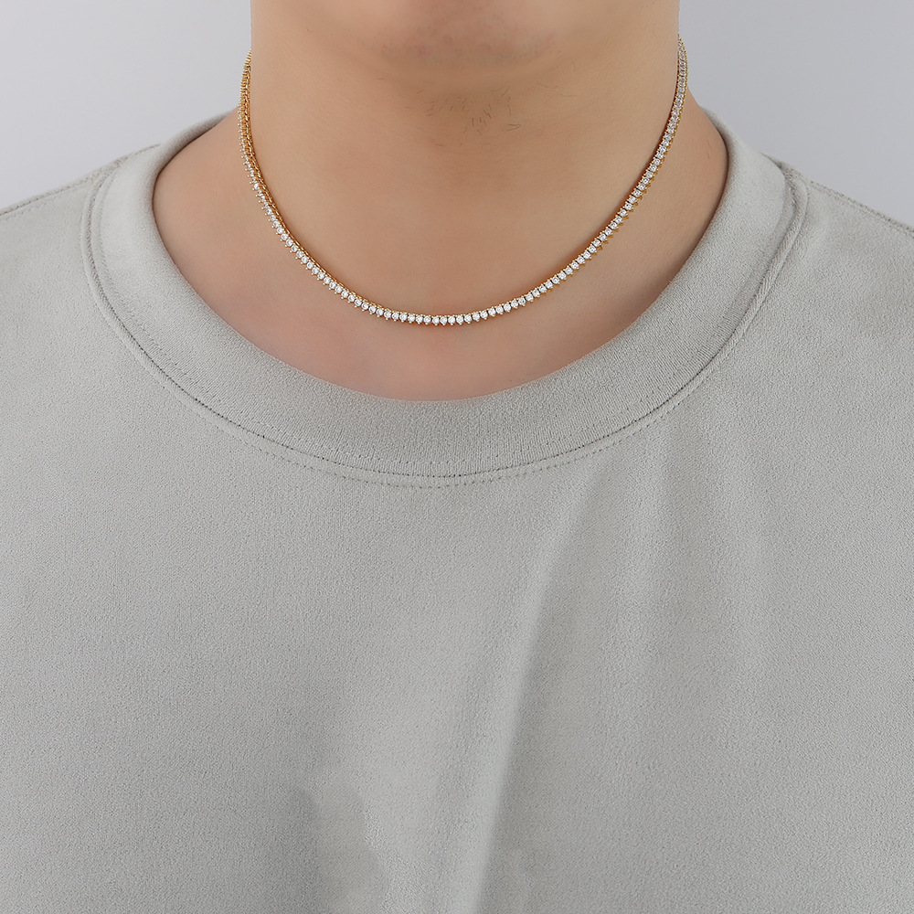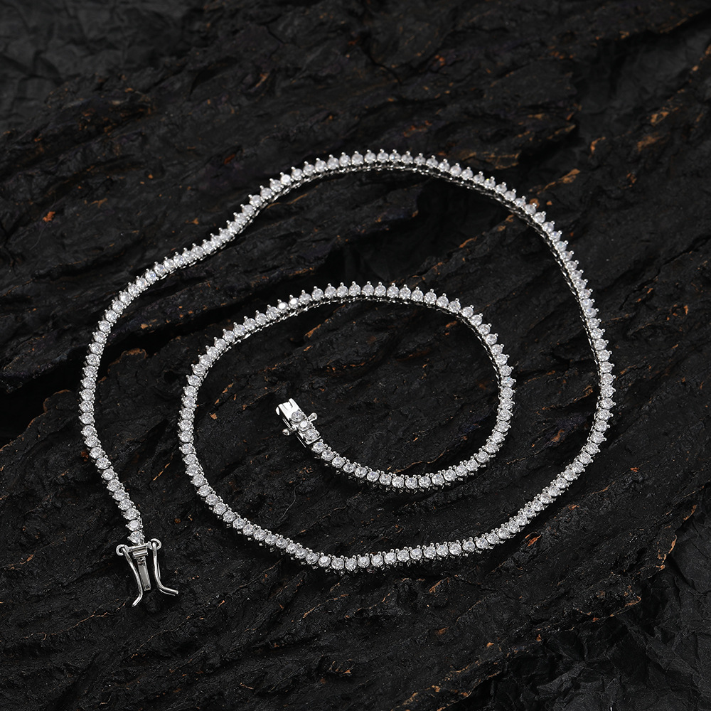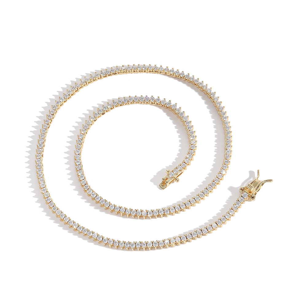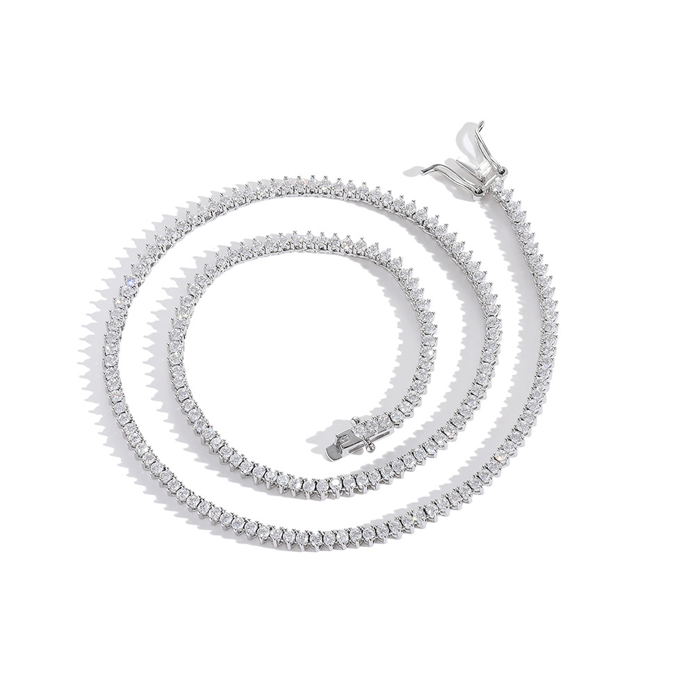 Hip Hop Copper Inlaid Zircon 2mm Single Row 3 Prong Tennis Chain Necklace