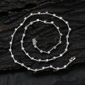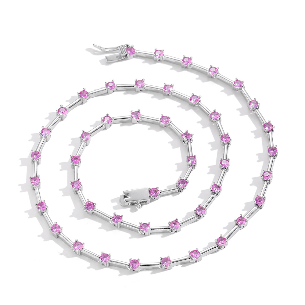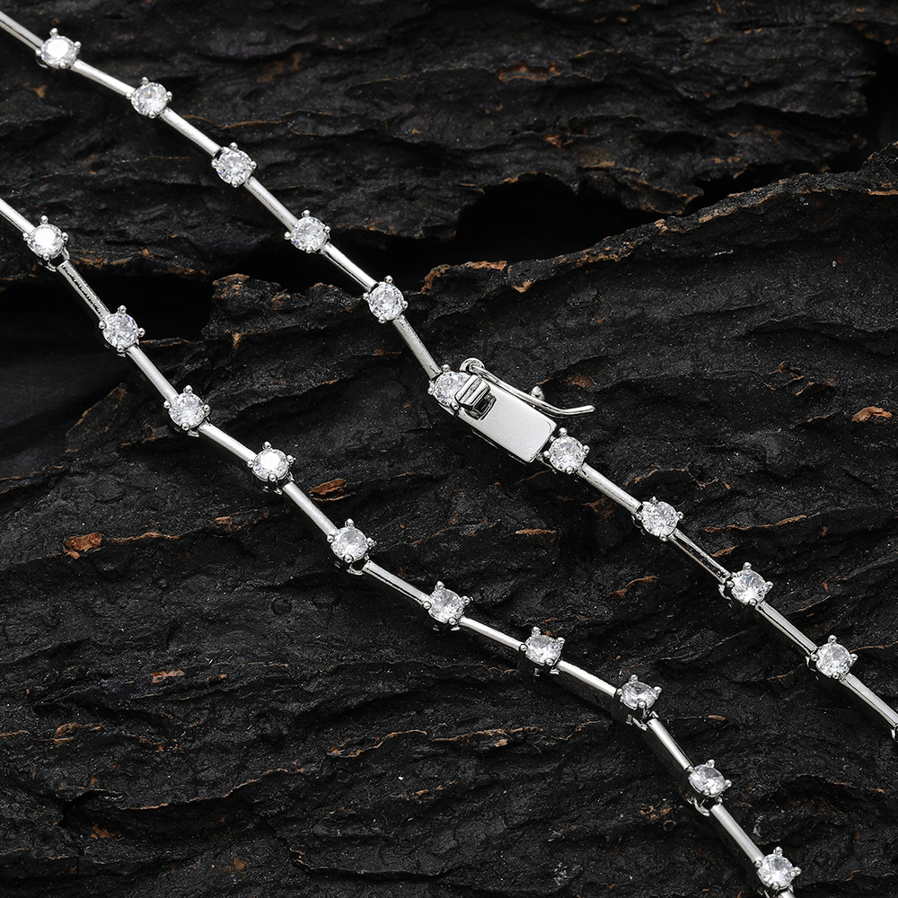 Hip Hop Copper Inlaid Zircon 3mm Bar Spacer Tennis Chain Necklace
